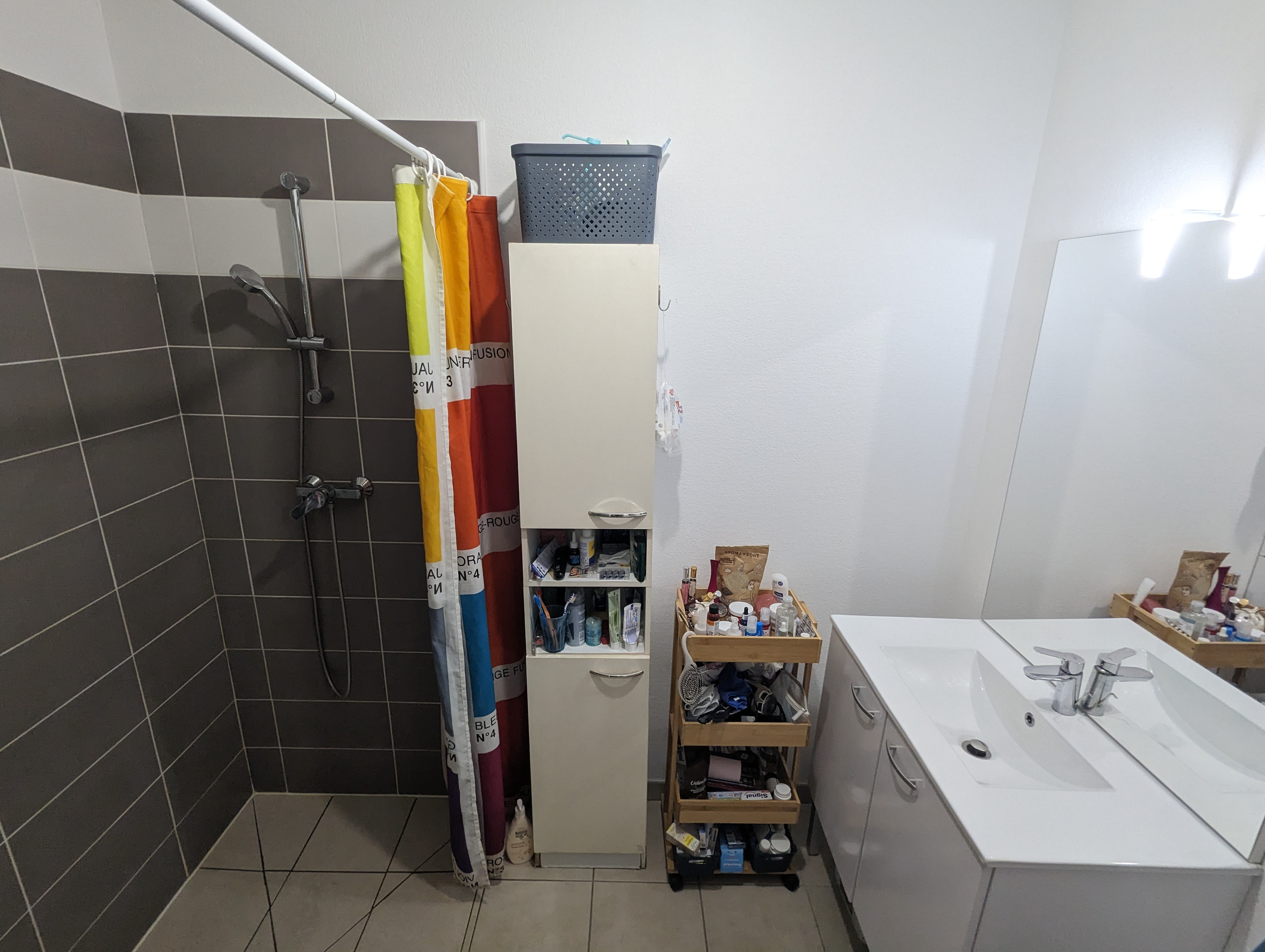 Une salle d’eau moderne, un WC indépendant et un cellier/buanderie.