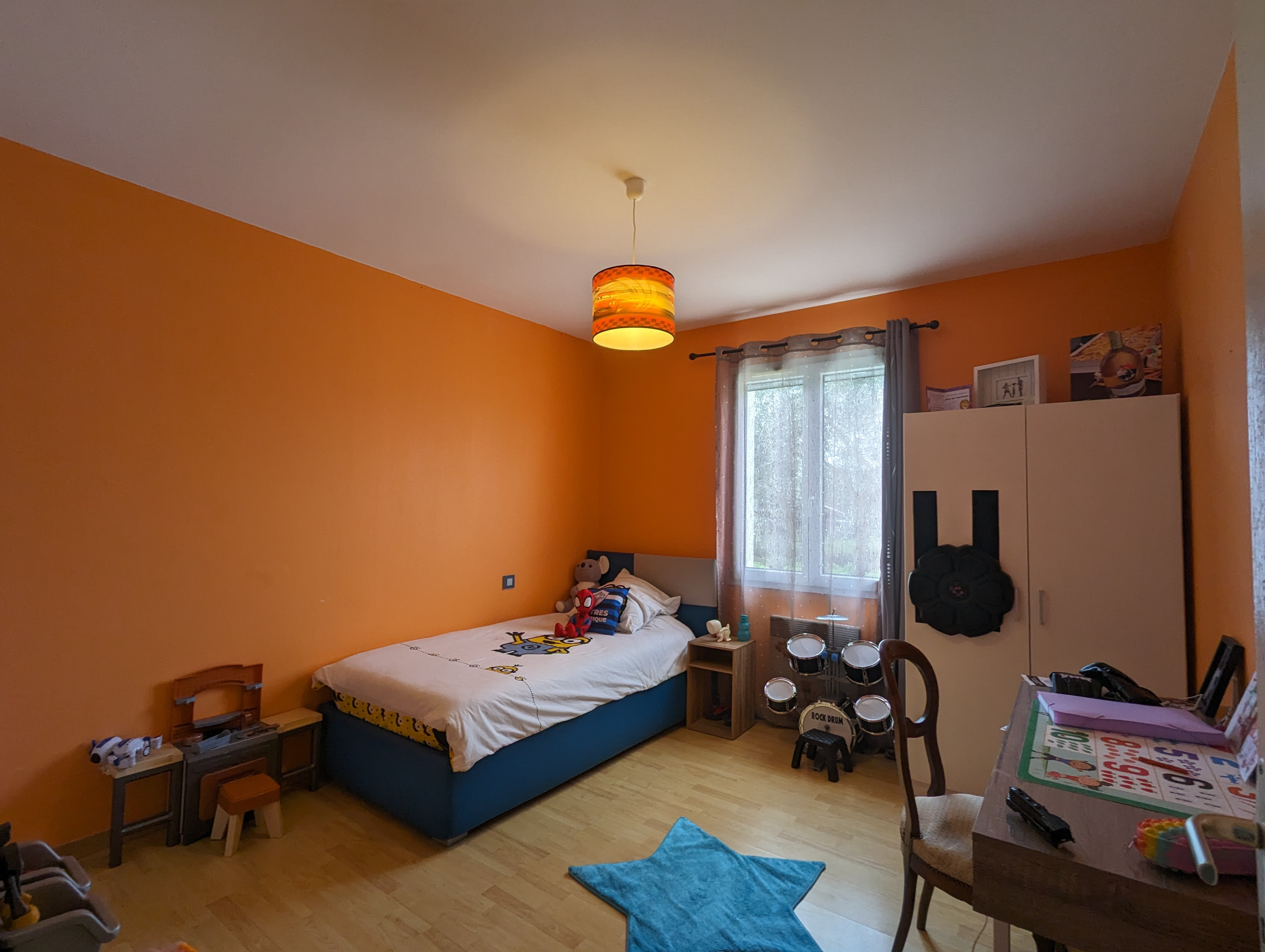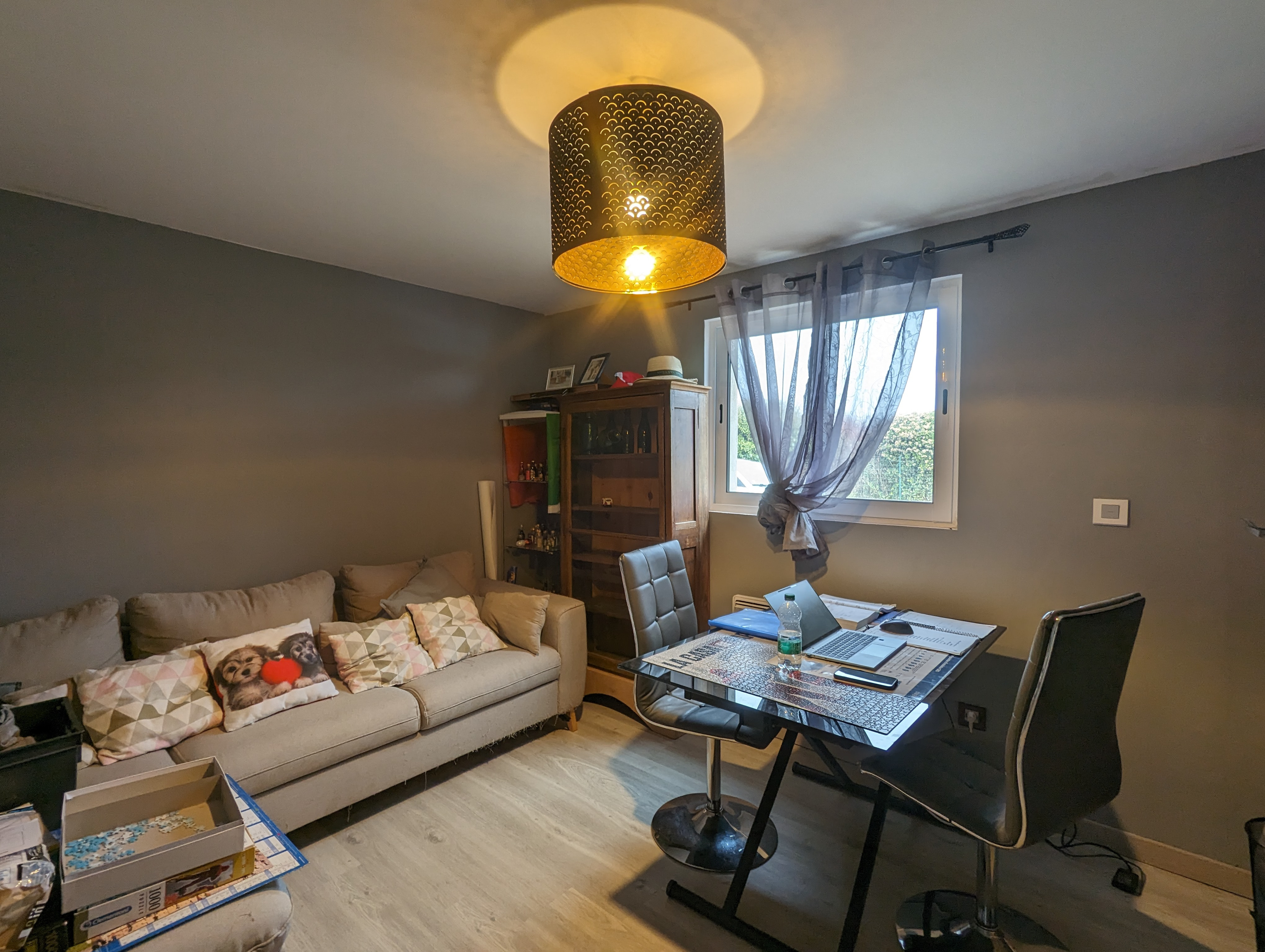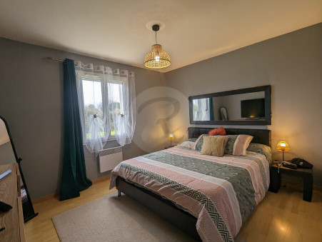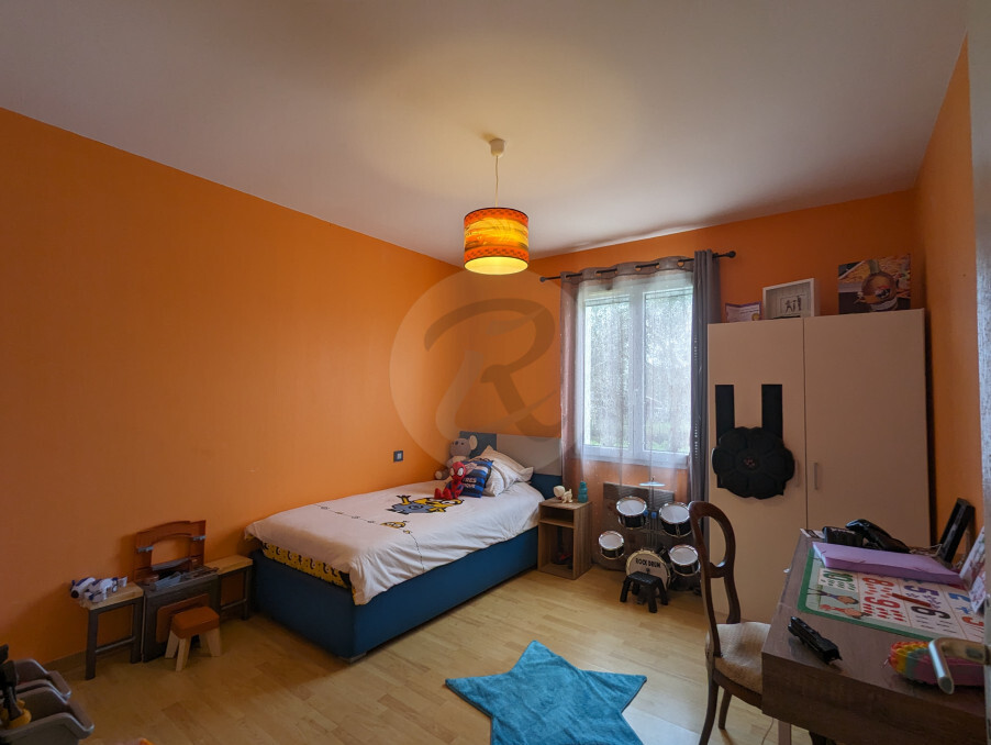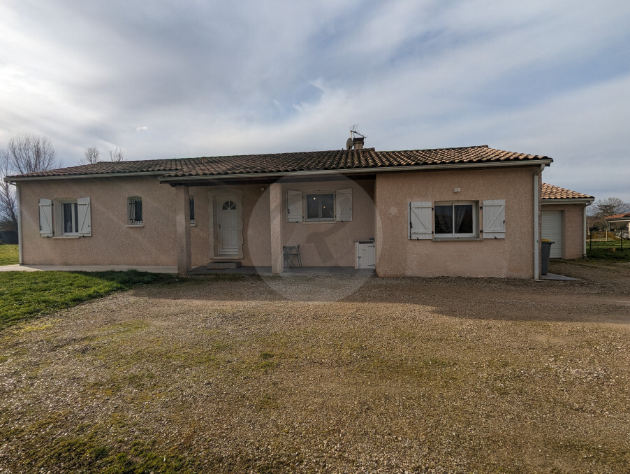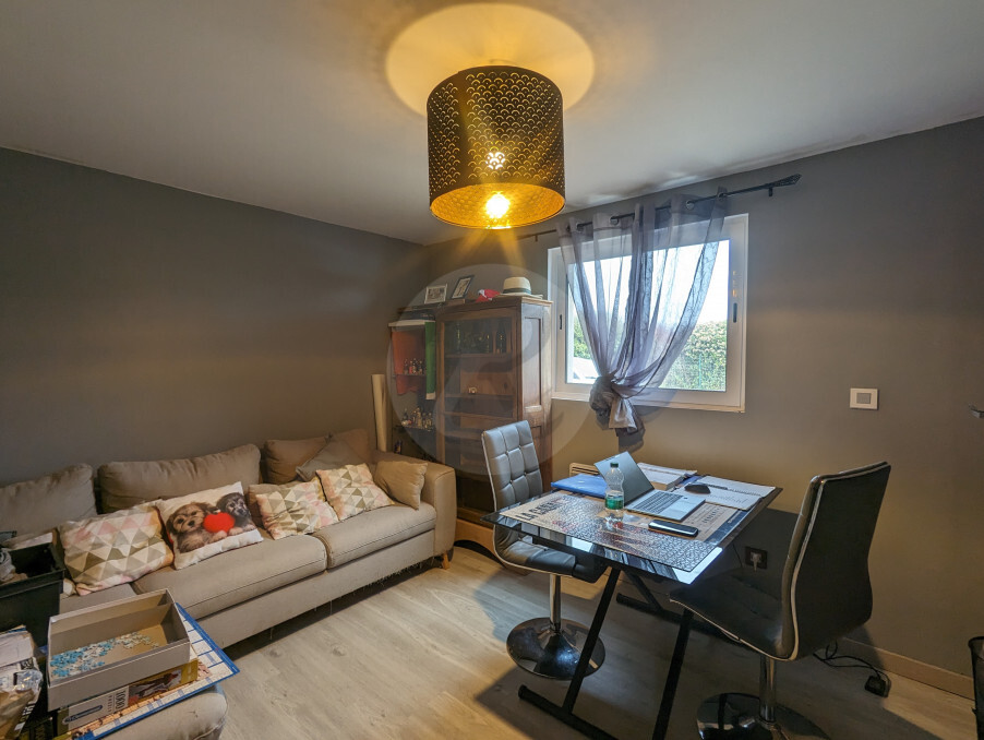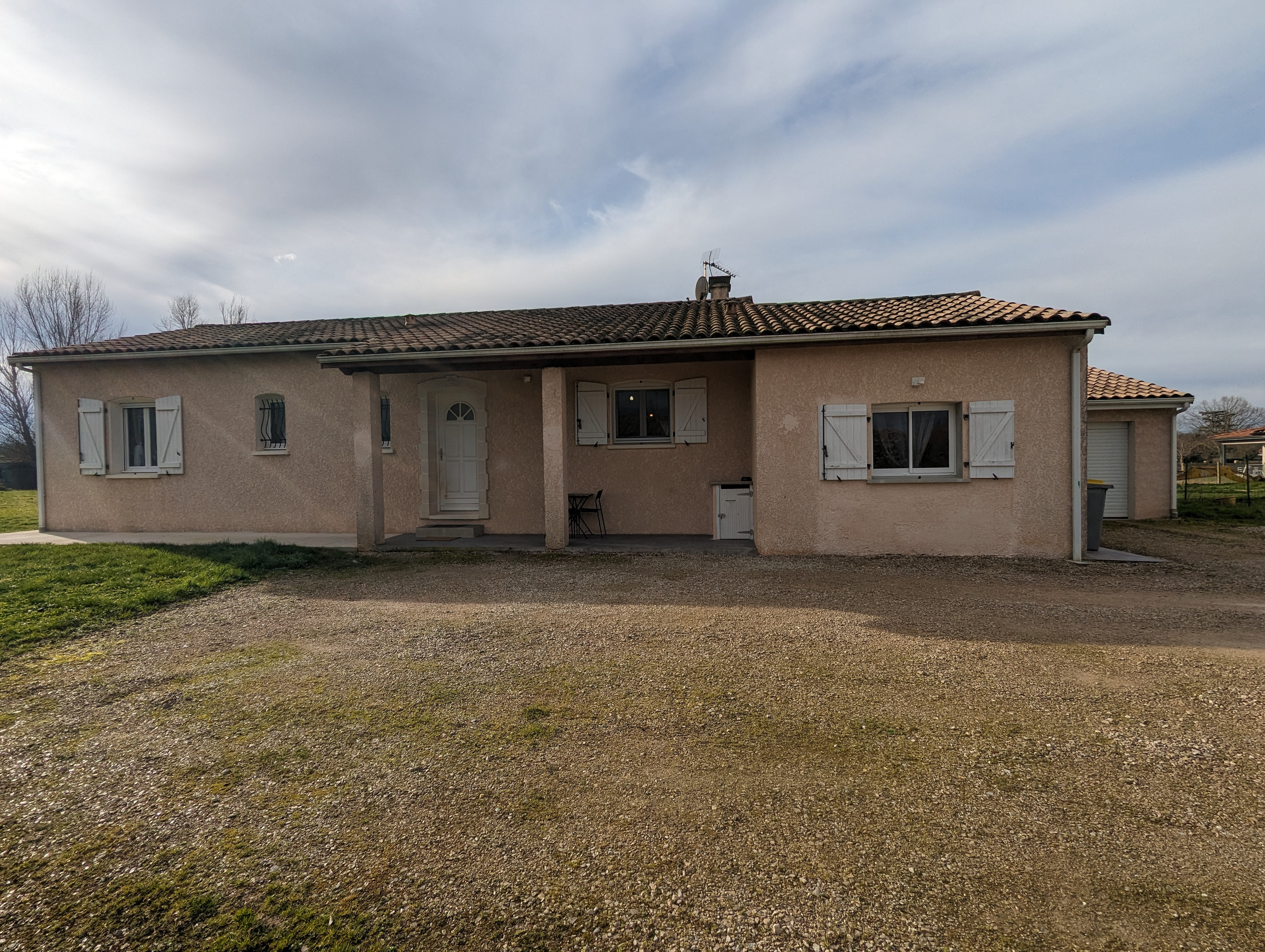 Maison construite en 2002 sur un terrain plat de 2005 m² avec jardin et terrain de pétanque. Elle offre une grande pièce de vie lumineuse avec cuisine ouverte, cellier, buanderie, bureau, et trois chambres avec placards. La salle de bain dispose d'une douche, baignoire et rangements.