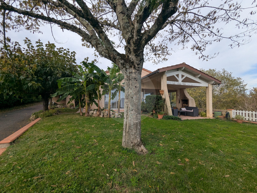 Accès direct à une grande terrasse aménagée (barbecue, évier, cuisine extérieure) offrant une vue panoramique exceptionnelle