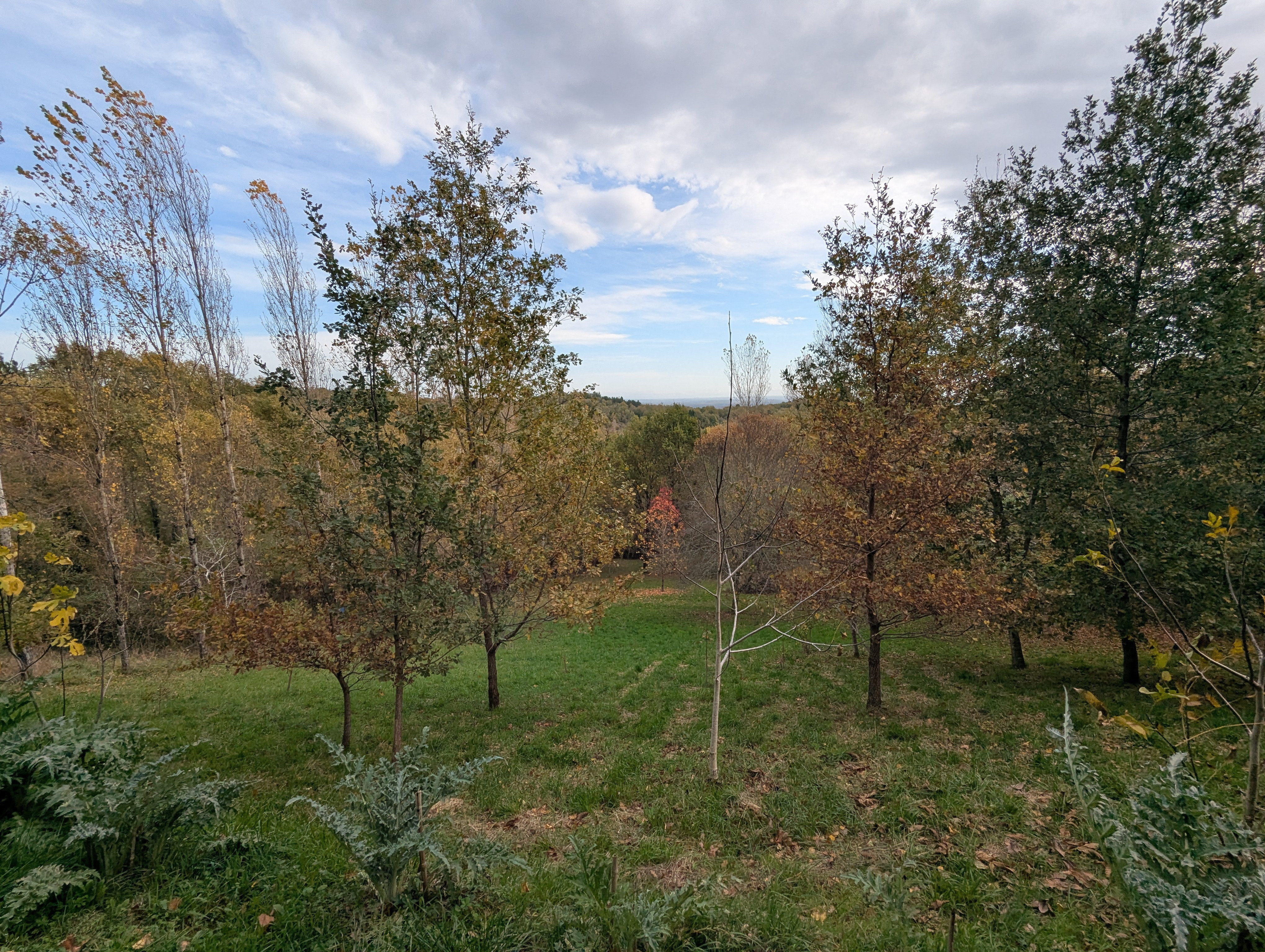 Le terrain est arboré de chênes, châtaigniers, figuiers, cerisiers, noyers.