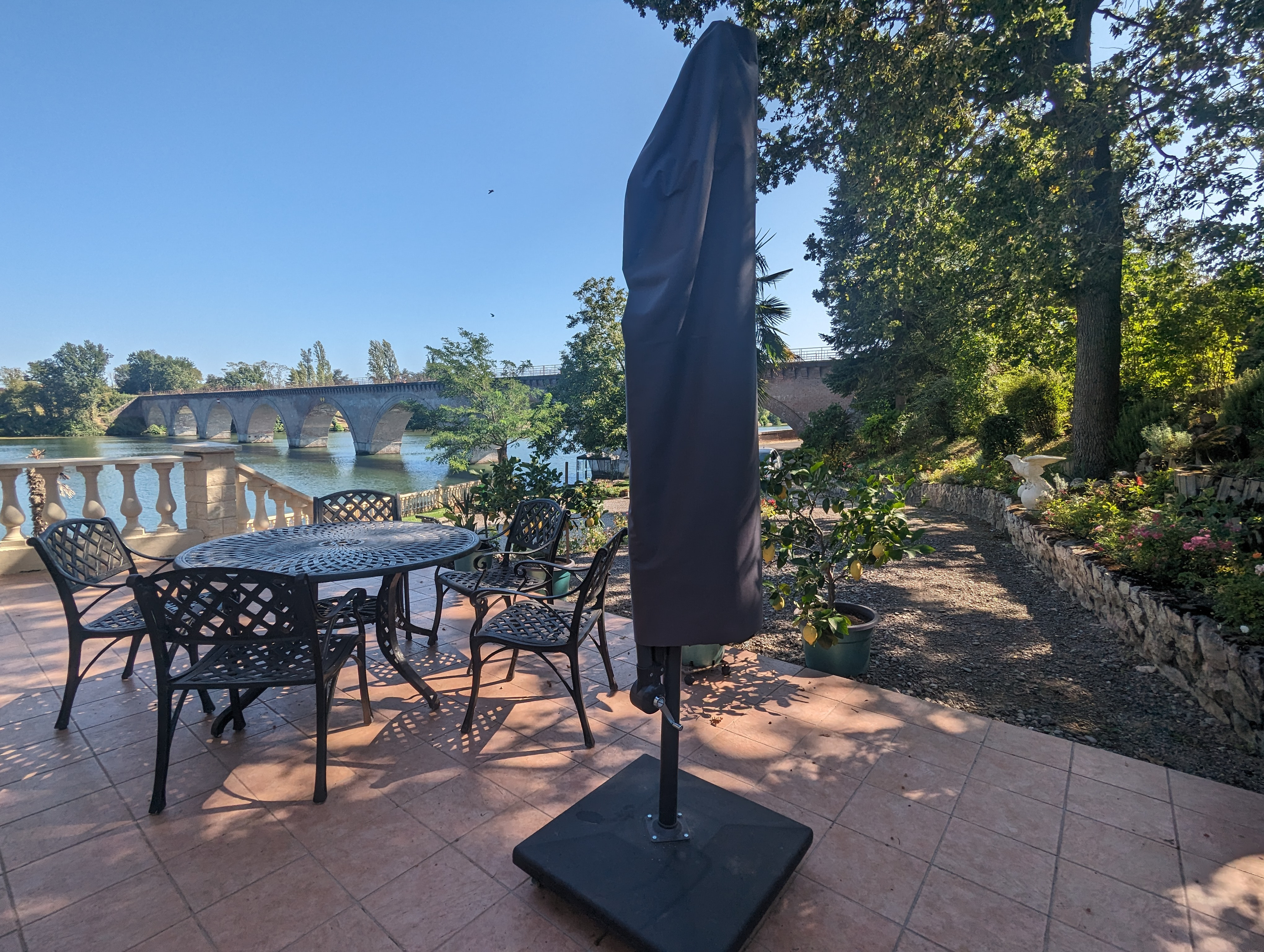 L’extérieur vous ravira par son environnement exceptionnel. Plaisir de disposer de plusieurs espaces détentes, terrasses couvertes, terrain arboré avec une multitude d’arbres fruitiers, terrasse avec son barbecue, bassin avec jet d’eau, ponton pour amarrer son bateau.
