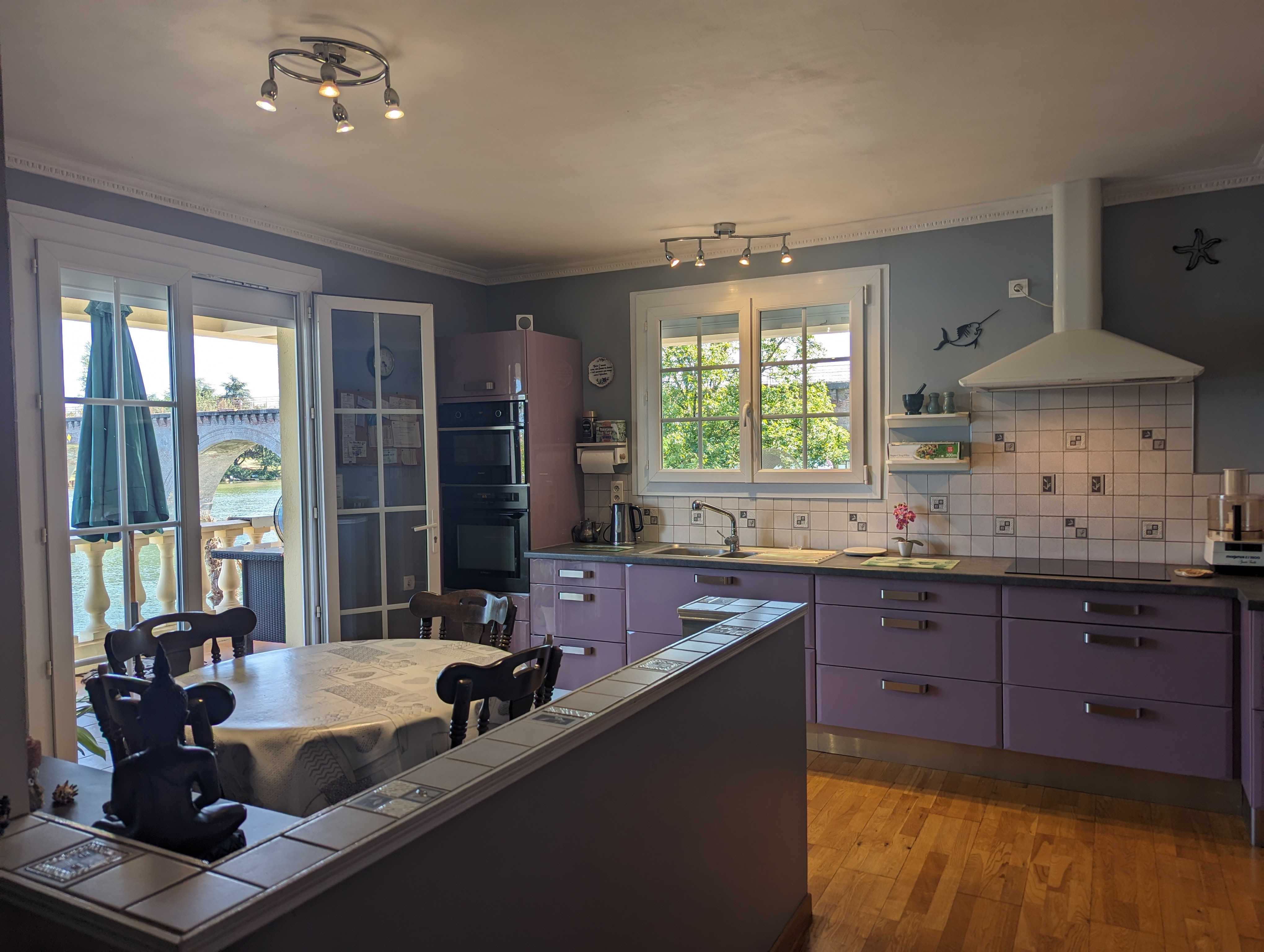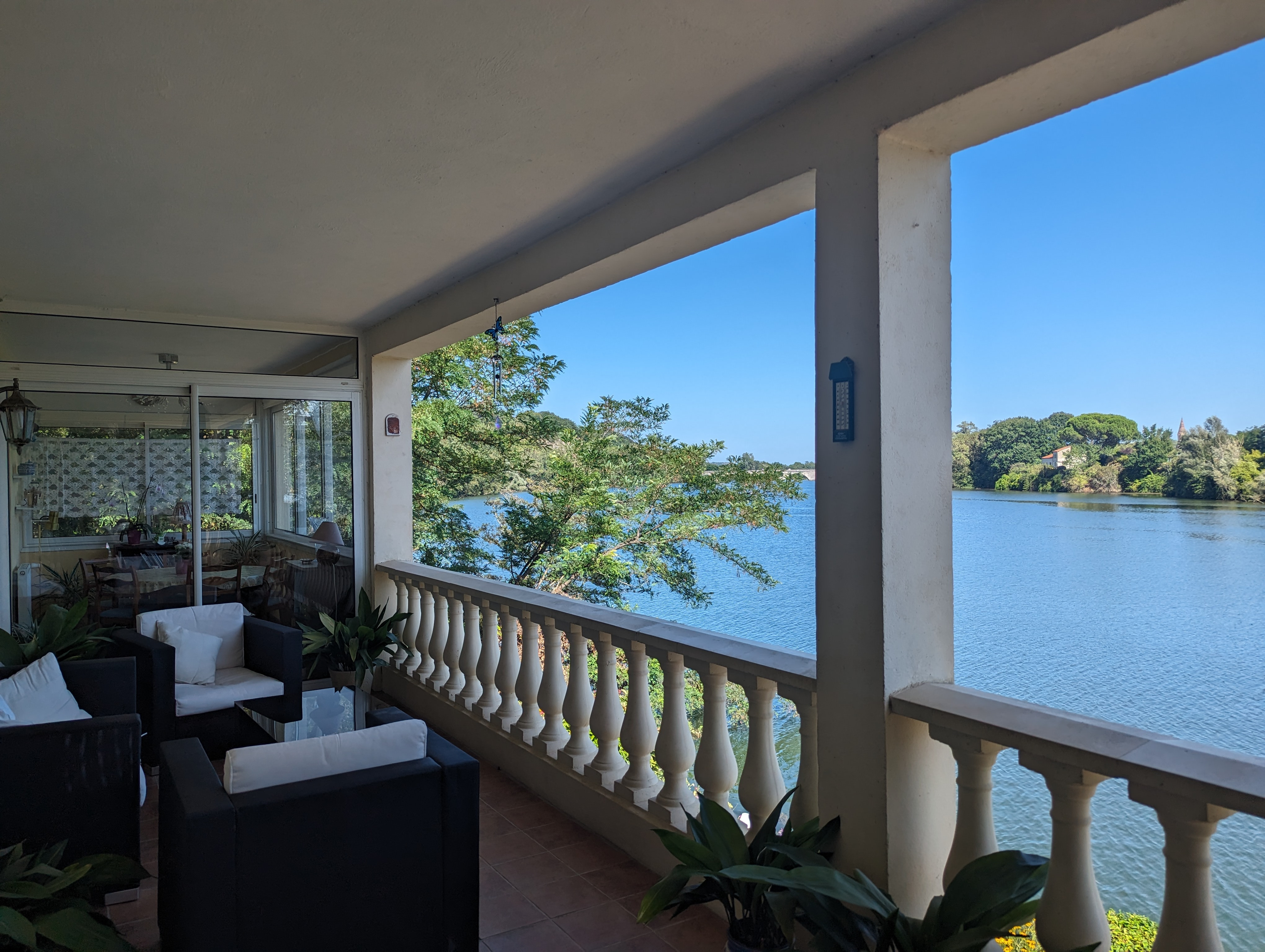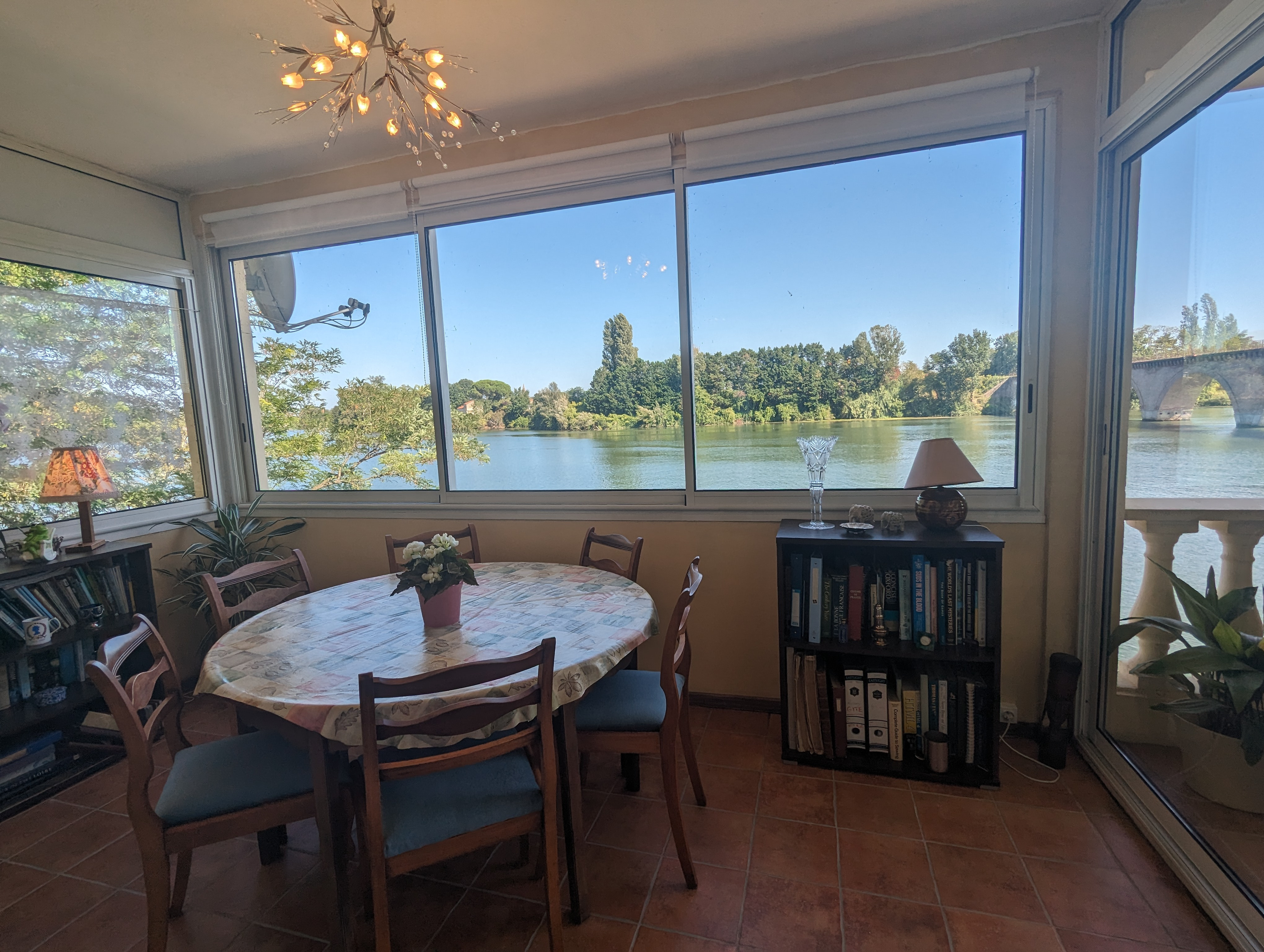 Elle se compose d’une entrée couverte, d’un espace cuisine de 18m² et d’une pièce de vie de 34m² avec un accès direct sur la terrasse couverte de 30m² environ face au TARN, ainsi qu’une véranda de 9,5m².