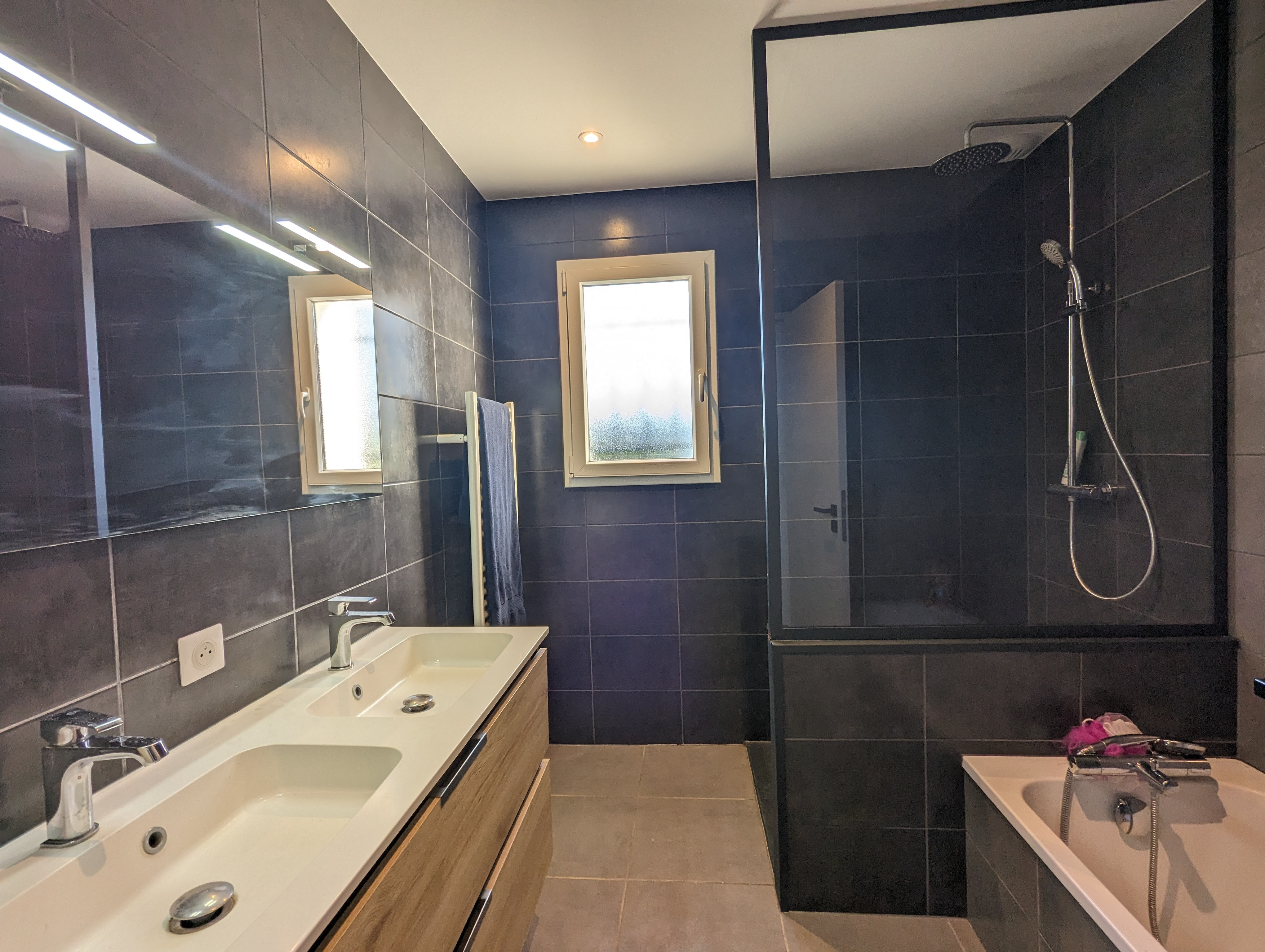 Côté nuit, vous disposerez de trois chambres de 14m², de 11m² et de 10,5m² avec une salle de bains commune équipée d’une douche et d’une baignoire.