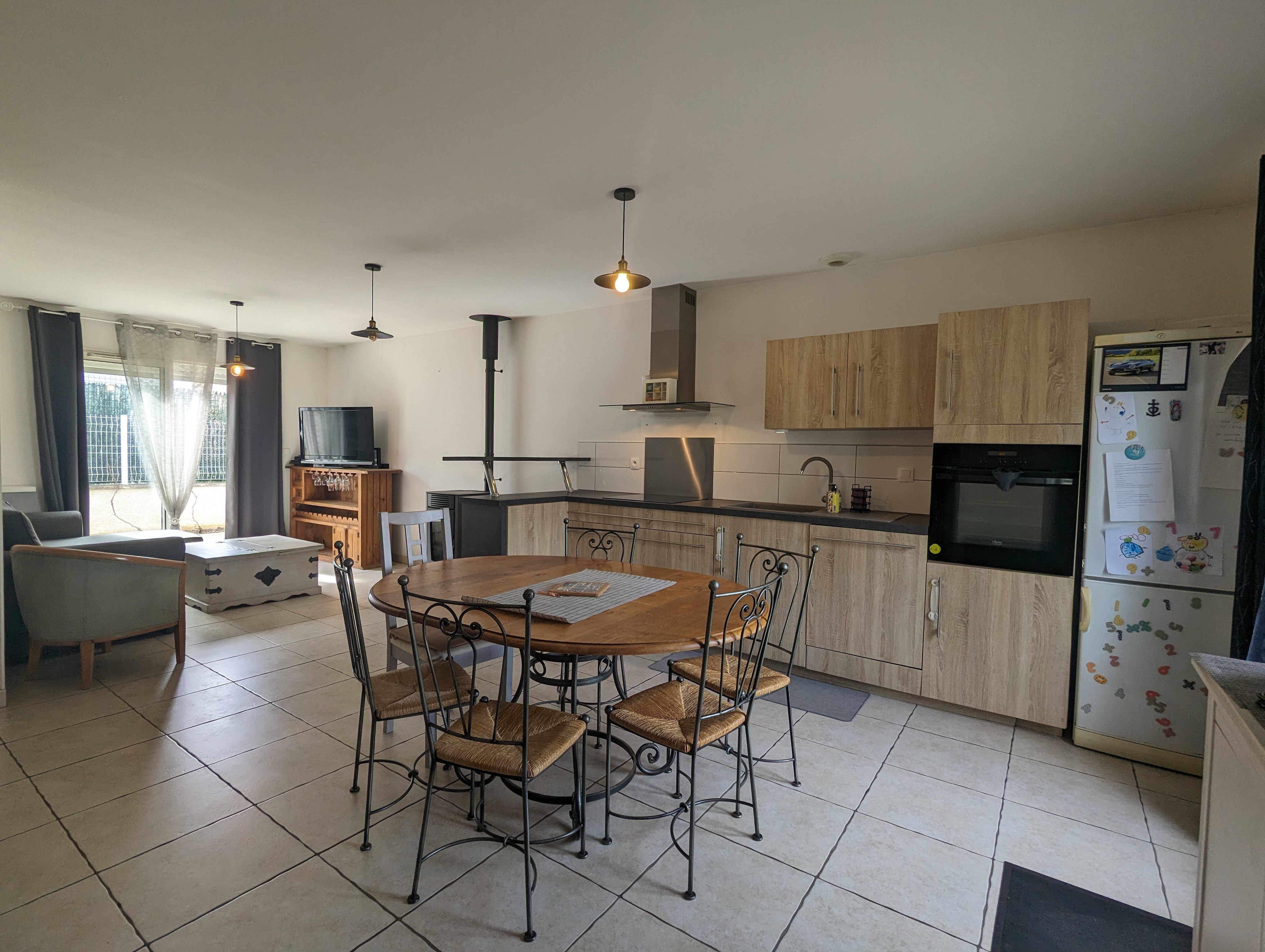 D'une superficie de 85 m², elle est édifiée sur un terrain de 587 m² dans un lotissement calme et proche du centre du village.
