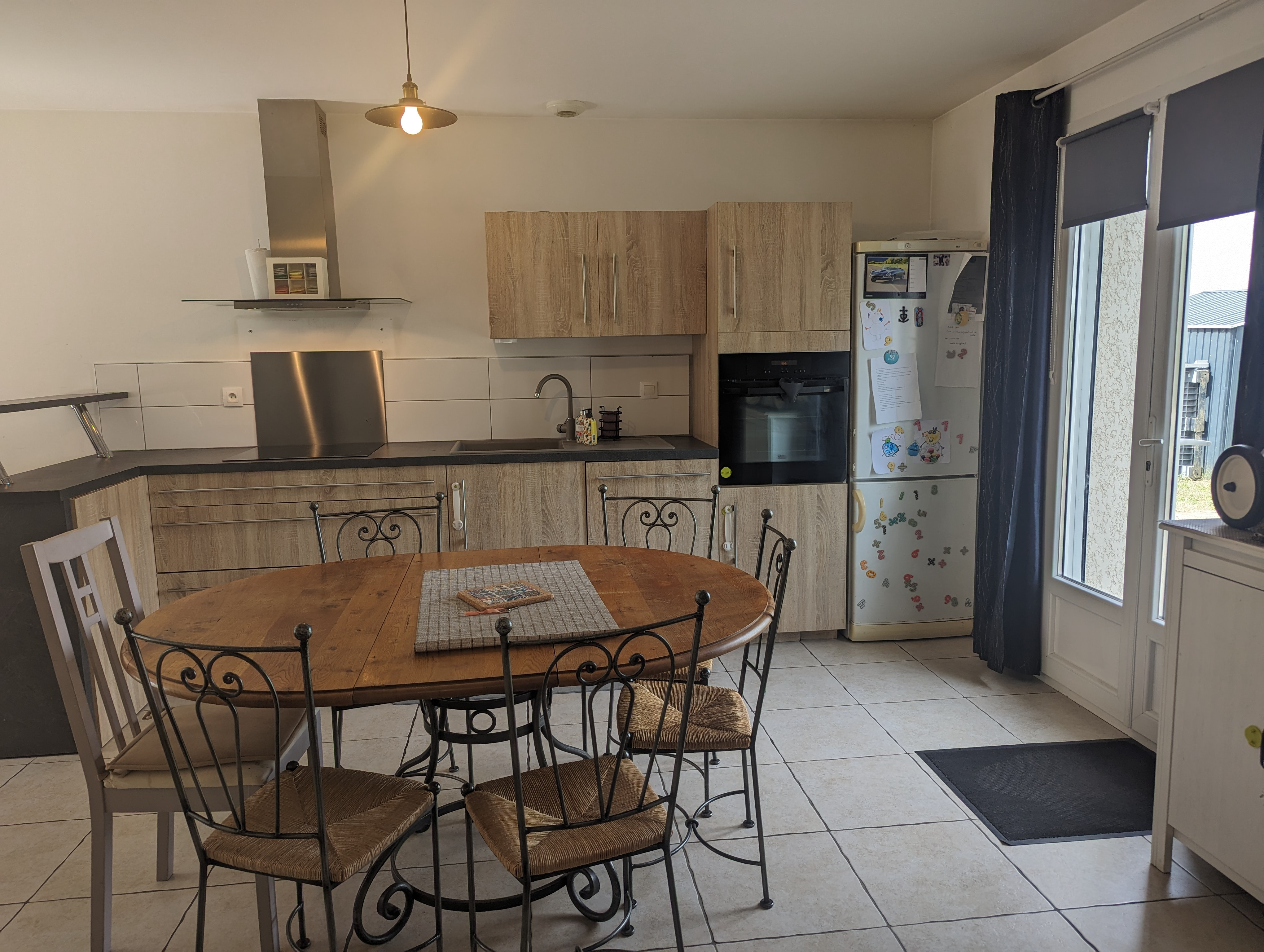 La maison se compose d'une pièce de vie lumineuse de 33 m² avec un poêle à granules, ainsi que d'une climatisation réversible dans le couloir côté nuit, garantissant un confort thermique optimal toute l'année.