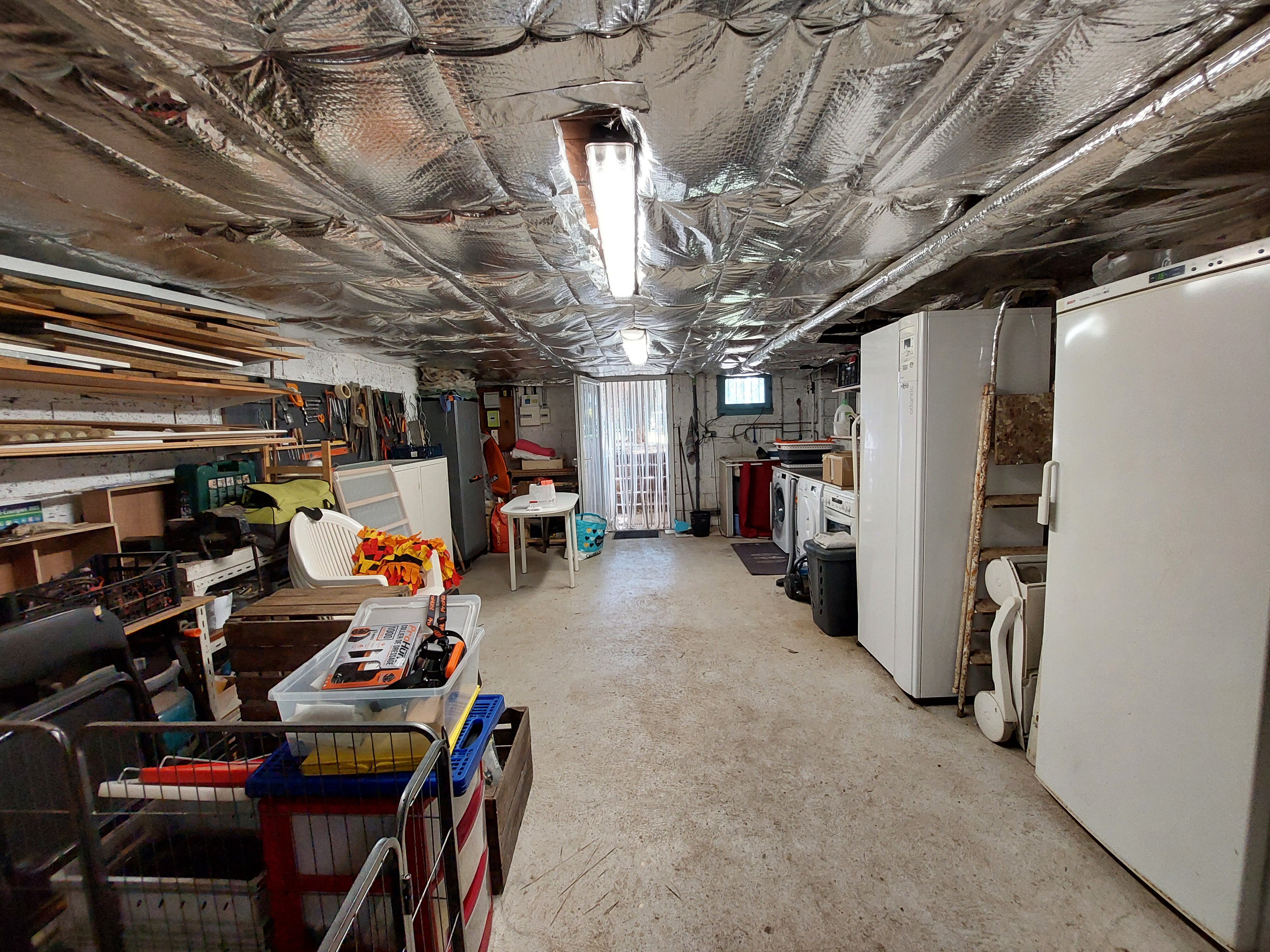 Au sous-sol vous trouverez un grand garage buanderie de 33m², une pièce de rangement de 16.5m² ainsi qu'une pièce aménagée et chauffée avec fenêtre de 15.3m².