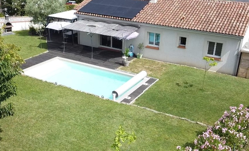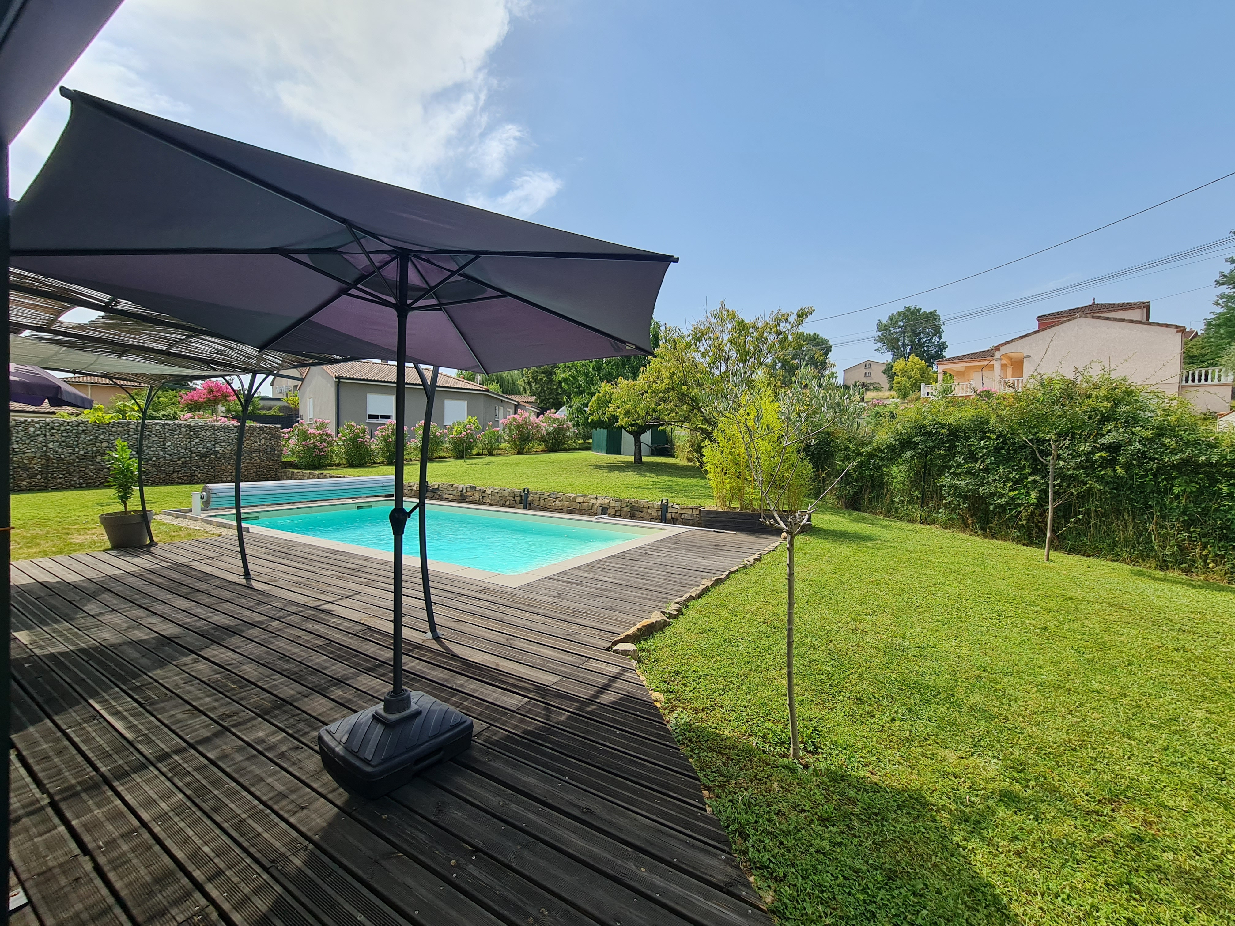 À l'extérieur, grâce à un environnement calme, propice à la détente, vous profiterez pleinement de la piscine, des deux belles terrasses dont une couverte avec une pergola bioclimatique et deux abris qui permettront de ranger le matériel de jardin et les équipements de piscine.