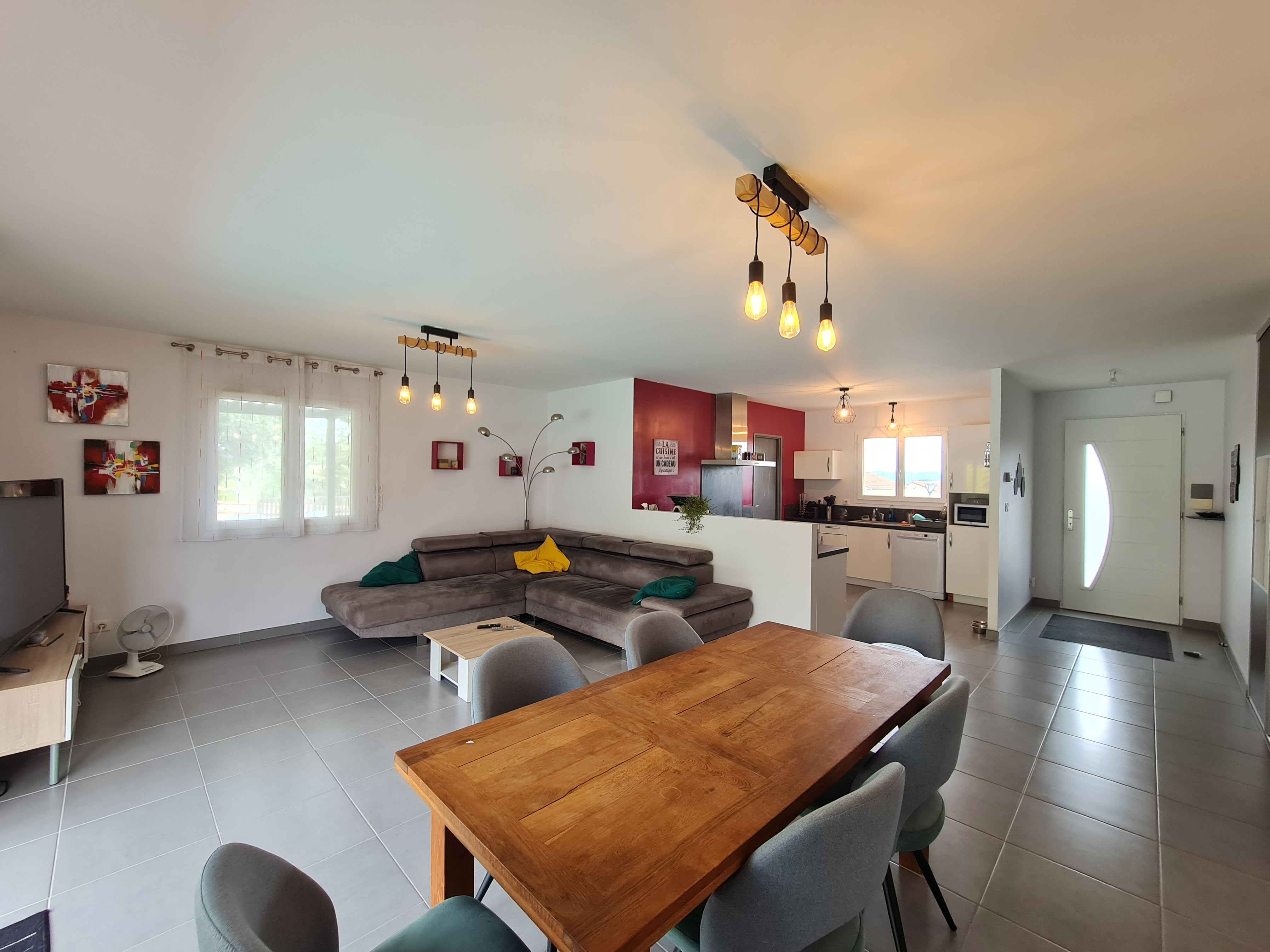 Au calme, cette maison de plain-pied de 114m² se compose d'une entrée avec placard, d'une agréable pièce de vie de 37m², d'un WC, de 3 chambres, d’une suite parentale avec salle d’eau et dressing, d'une salle de bains et d'un cellier buanderie.