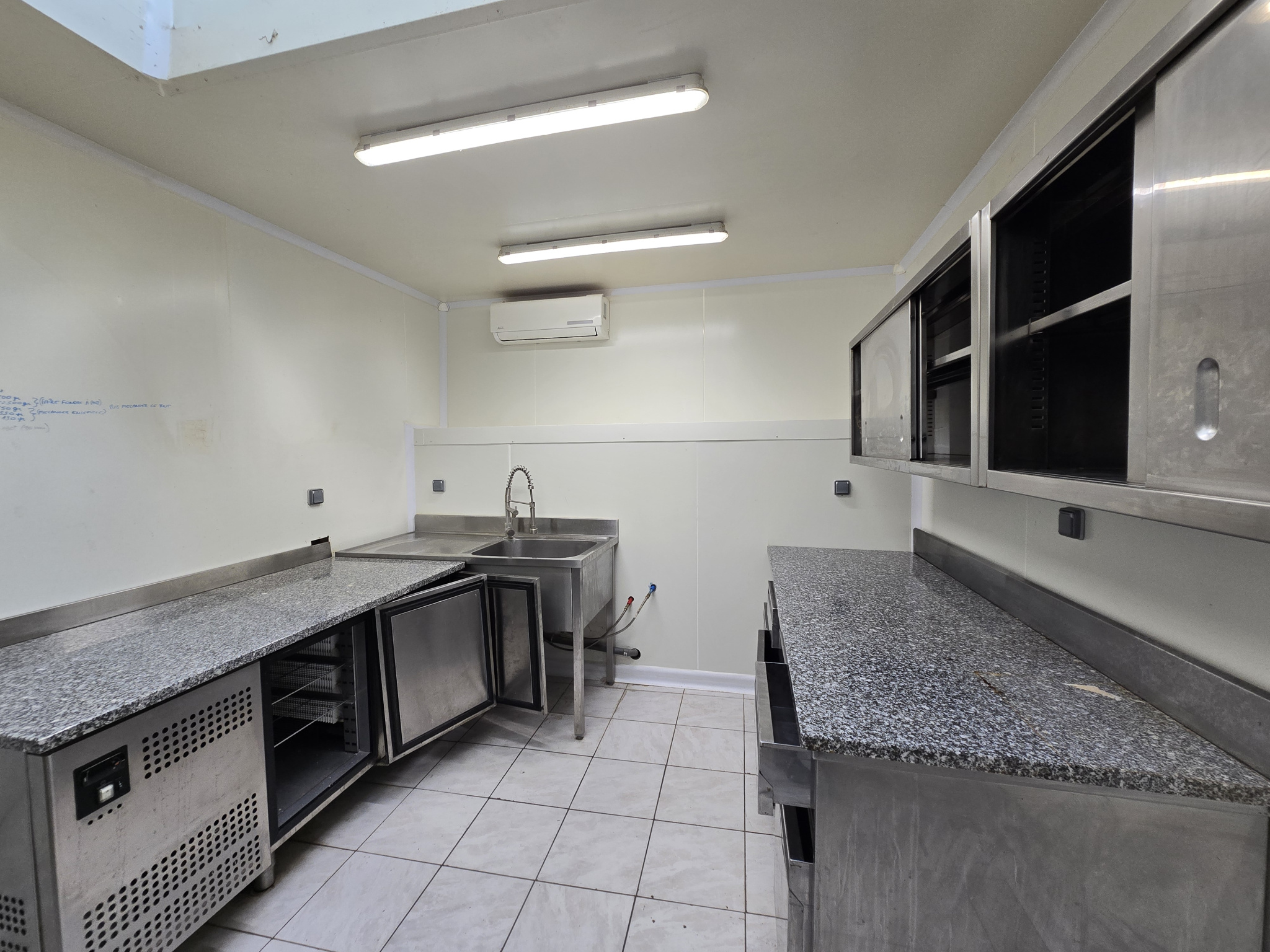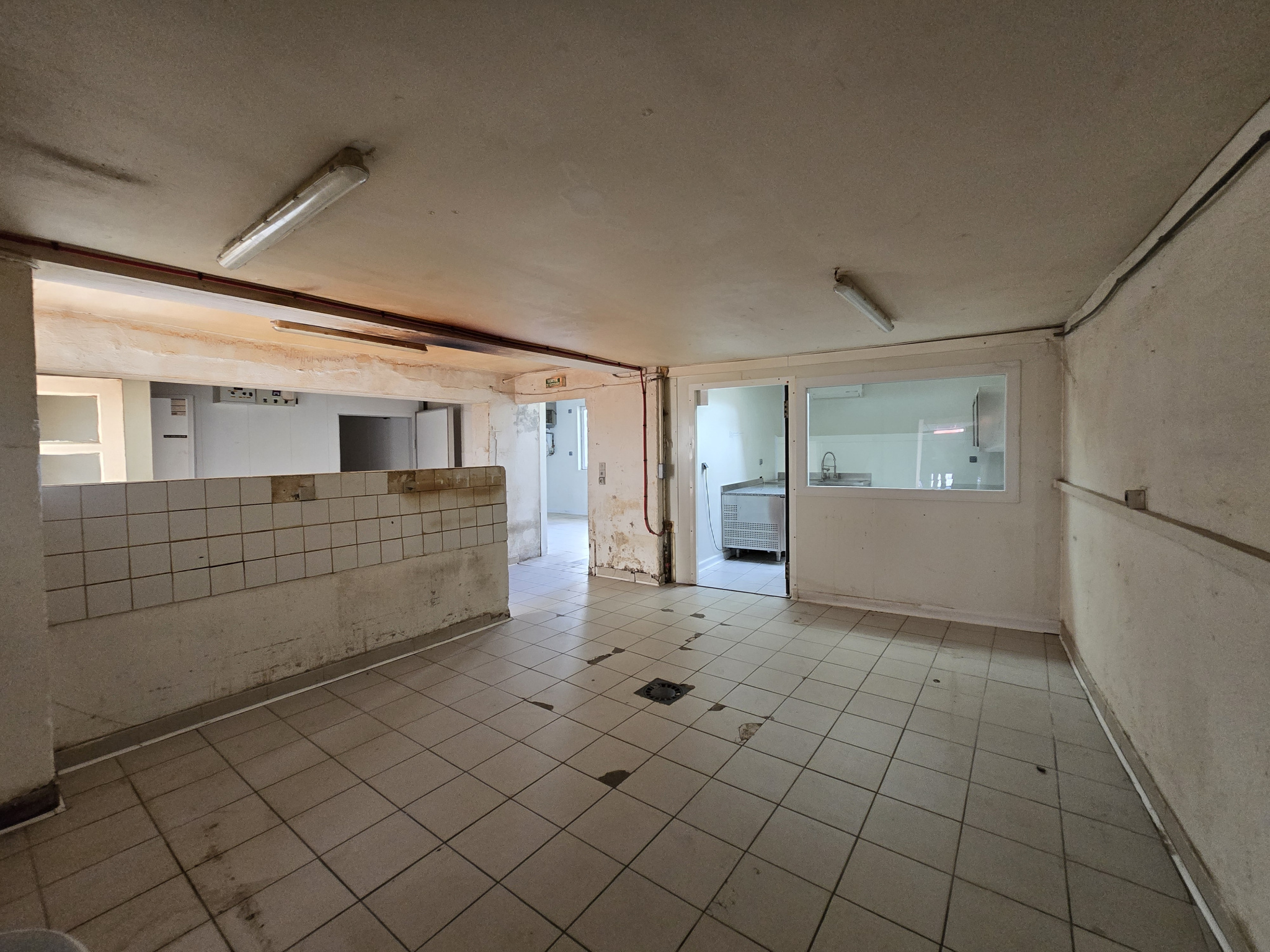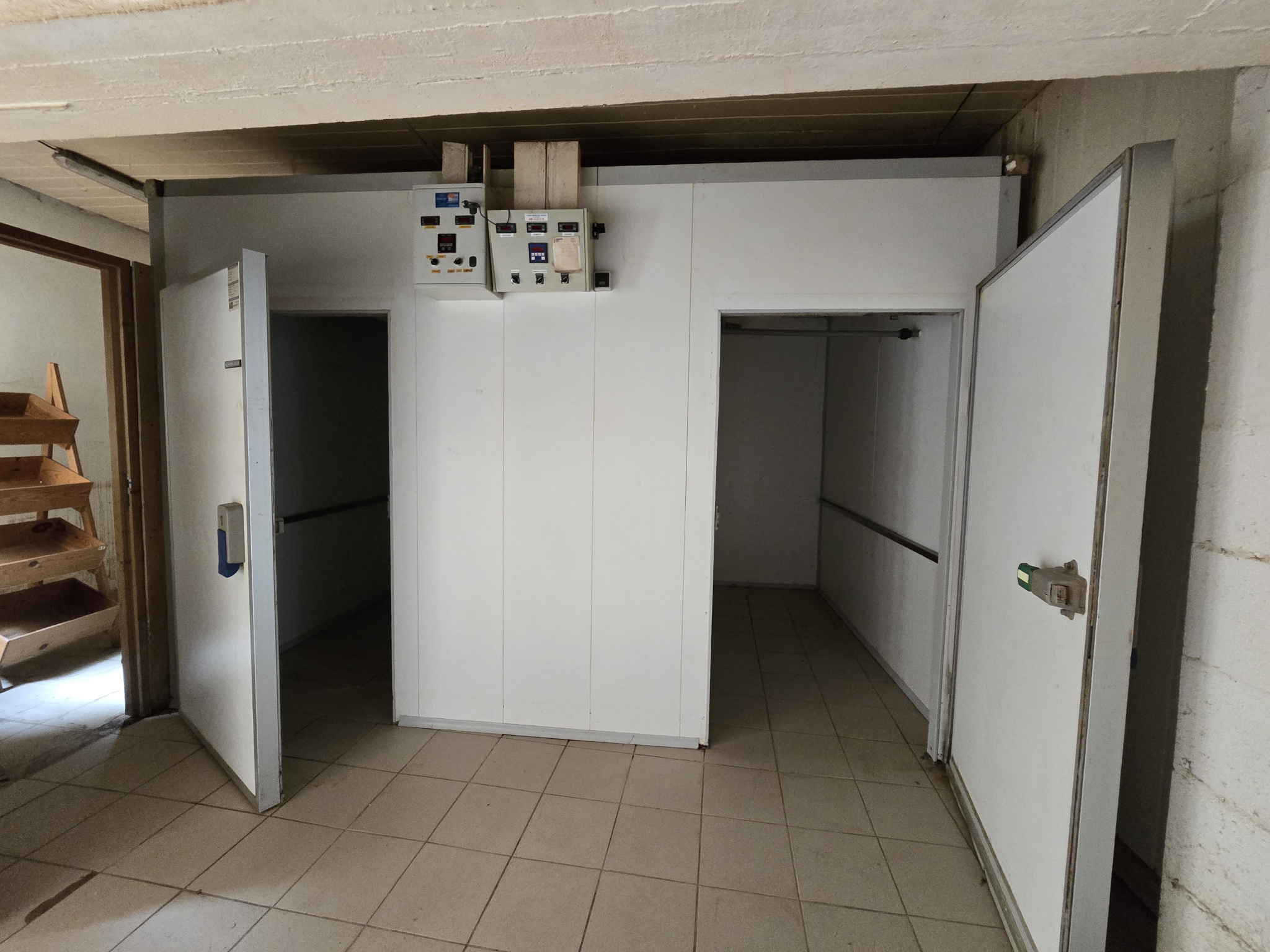 Au RDC, le local pro de 152m² se compose d'une surface de vente de 39m², d'un bureau de 5.8m², de trois laboratoires de 12m², 21m² et 26m², d'une chambre froide de 19m², d'une arrière cuisine de 13.7m², d'une salle d'eau de 5.7m², d'une pièce de 7m², mais également d'un patio intérieur fermé de 21m².