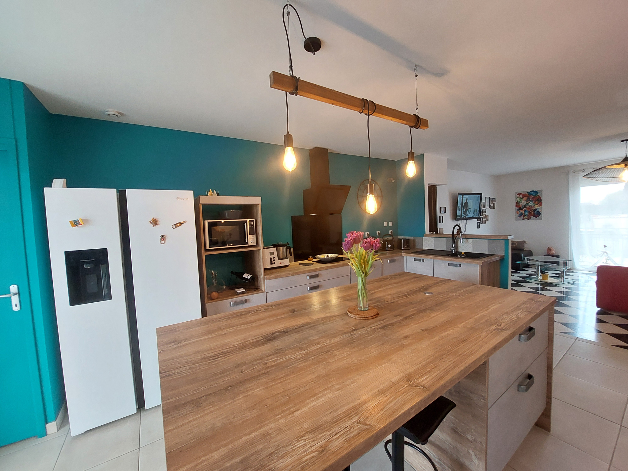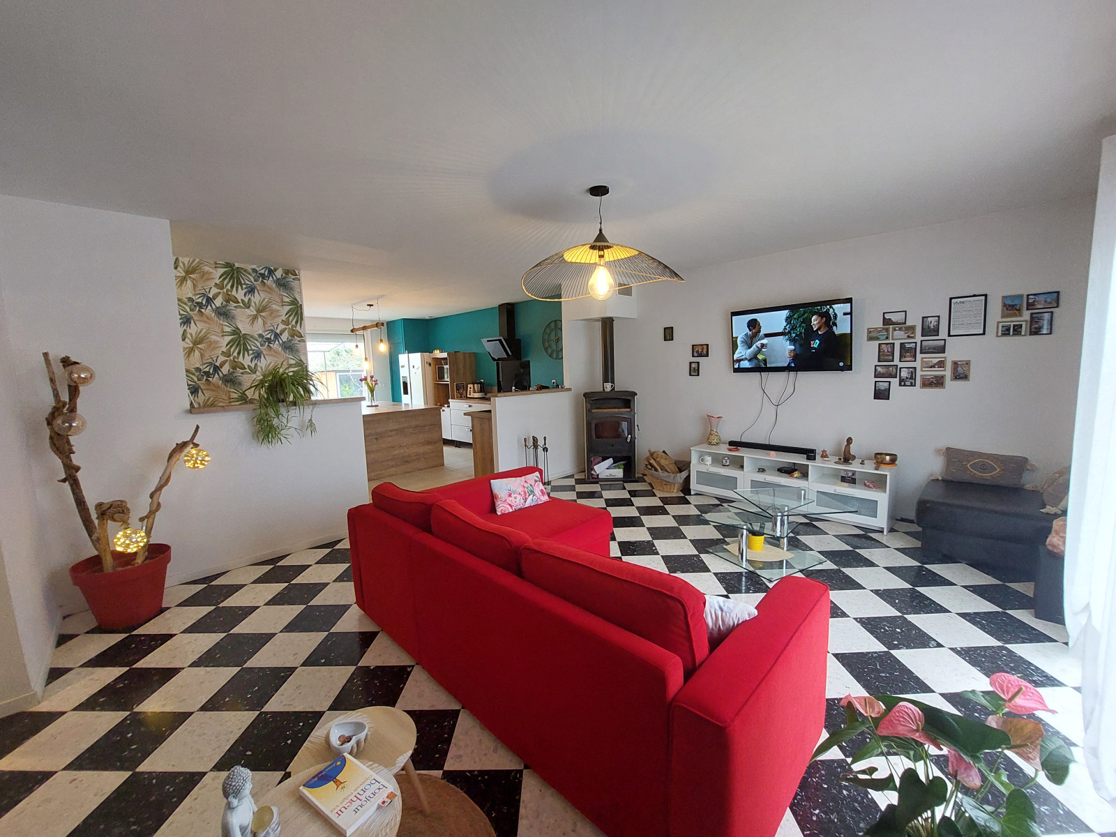 La maison principale, de 111 m² de plain-pied, se compose de 3 pièces lumineuses, récemment remises au goût du jour, alliant confort et fonctionnalité.