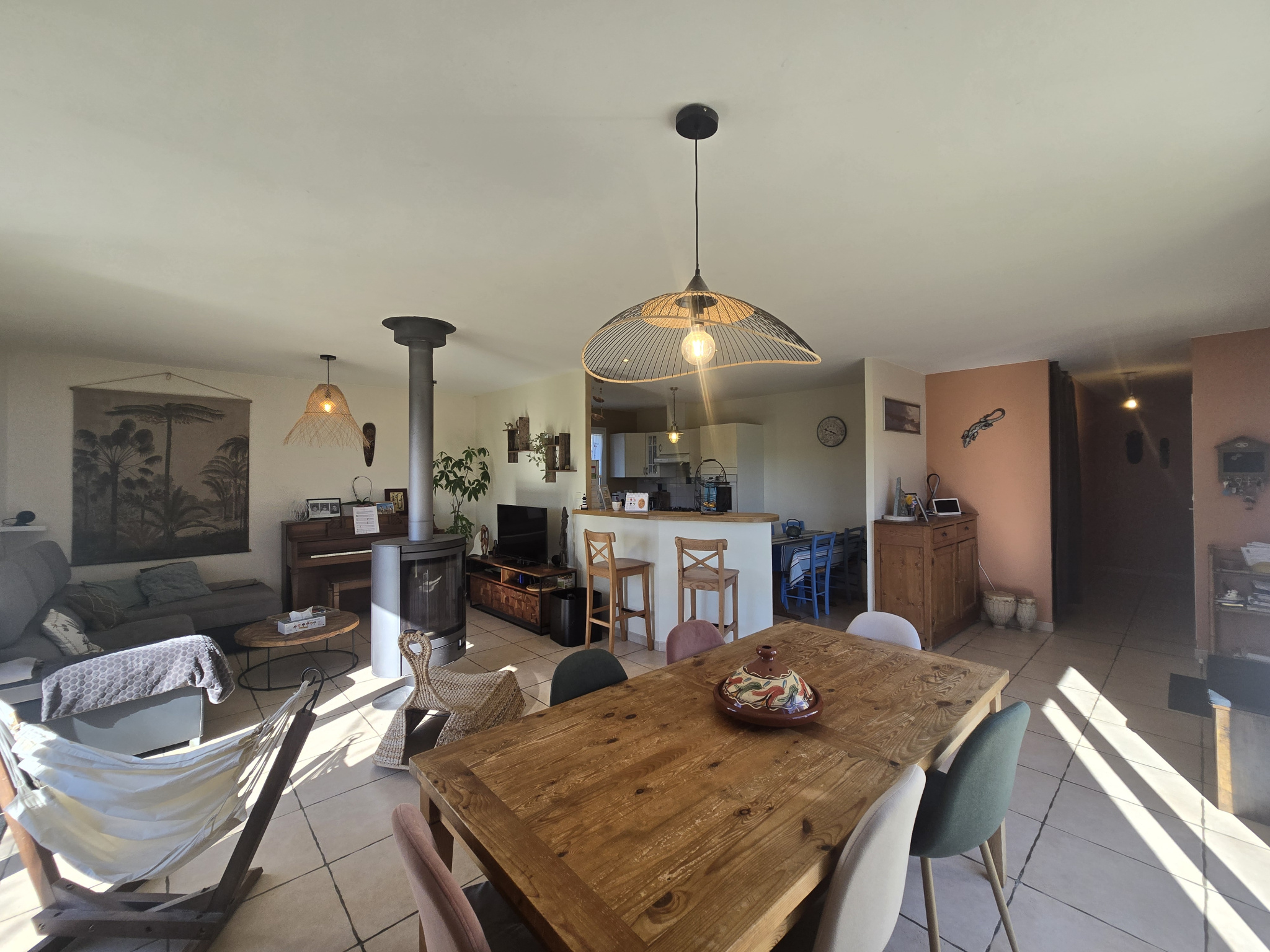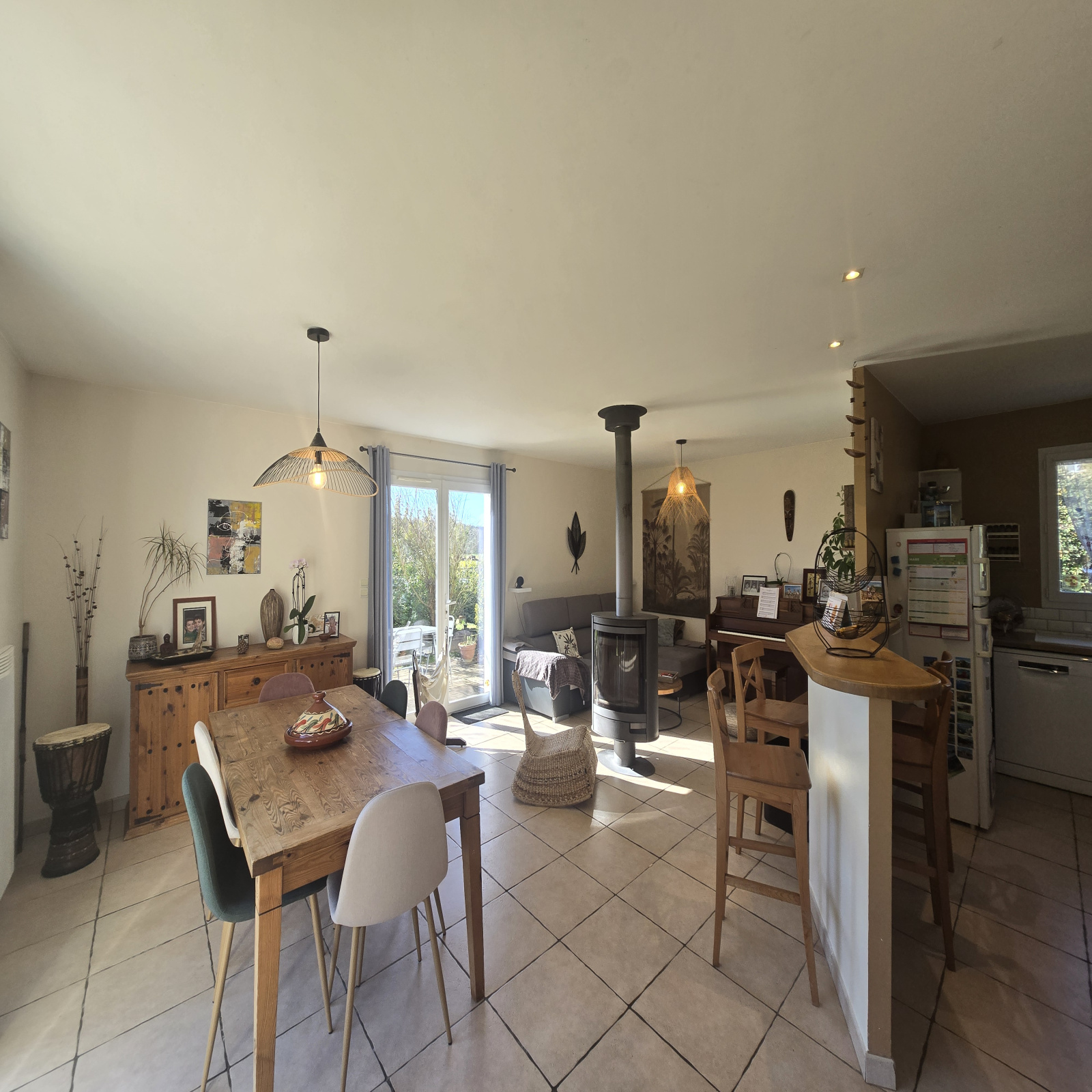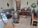 Dès l’entrée, vous serez séduit par une spacieuse pièce de vie d’environ 50 m², lumineuse et ouverte, agrémentée d’un poêle à bois, créant une atmosphère chaleureuse et conviviale. L’espace nuit se compose de quatre chambres confortables, ainsi que d’une salle de bain complète avec douche et baignoire.