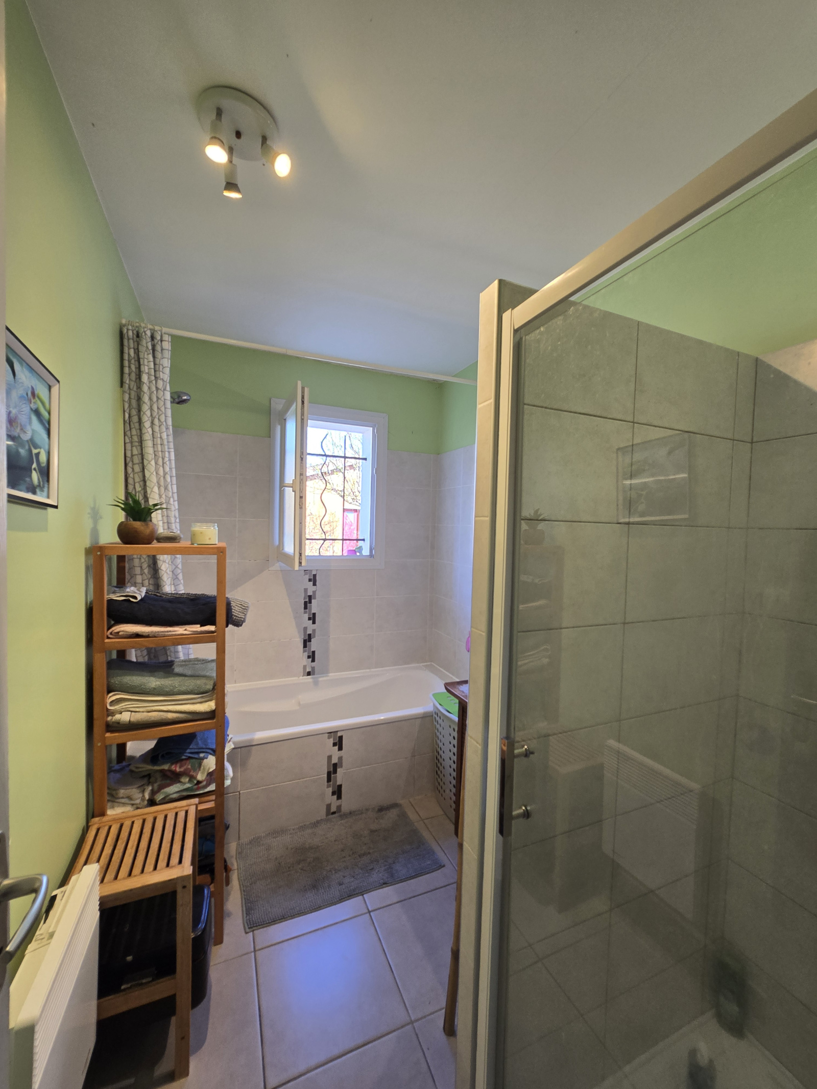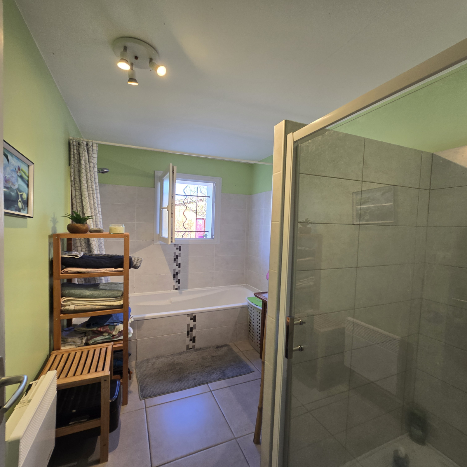 La maison bénéficie de prestations techniques appréciables : menuiseries en double vitrage PVC, production d’eau chaude par cumulus, ainsi que deux panneaux solaires (1040 W), contribuant à une meilleure efficacité énergétique.