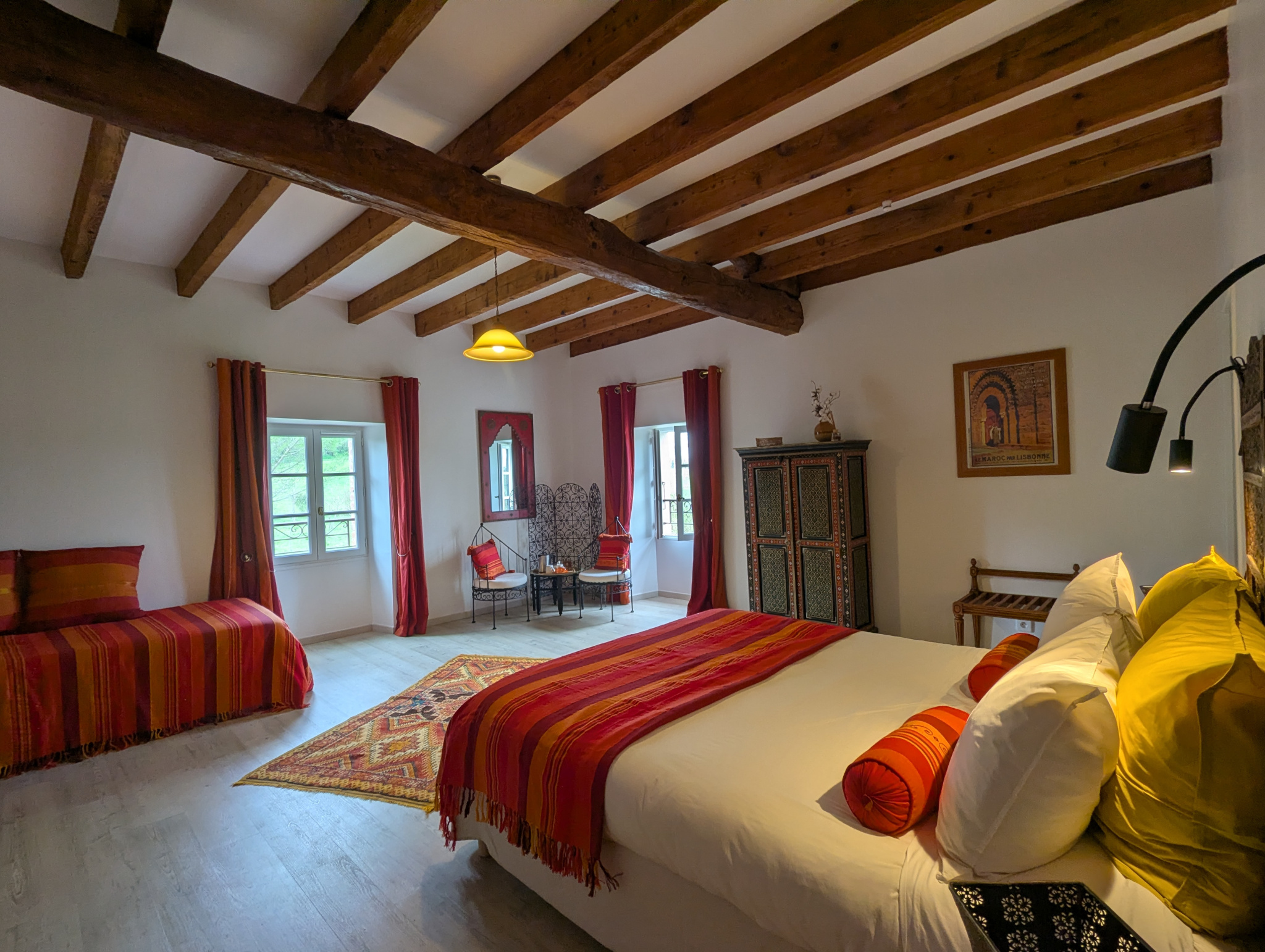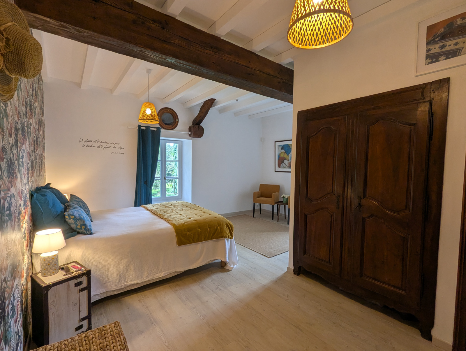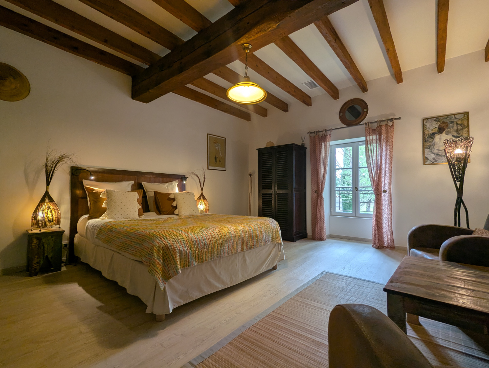 À l’étage, un vaste palier dessert cinq suites indépendantes, chacune dotée de sa propre salle d’eau et WC, offrant un cadre parfait pour une activité de chambres d’hôtes de charme ou pour recevoir famille et invités en toute intimité.