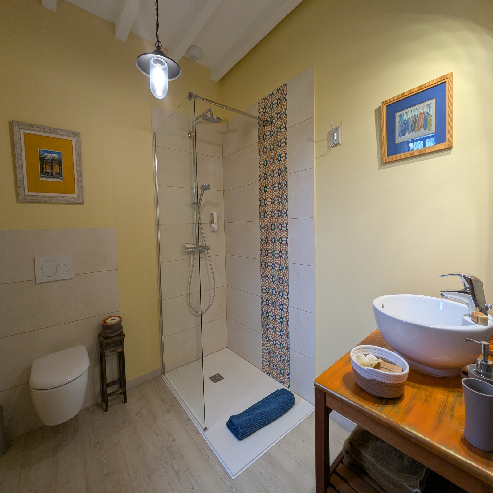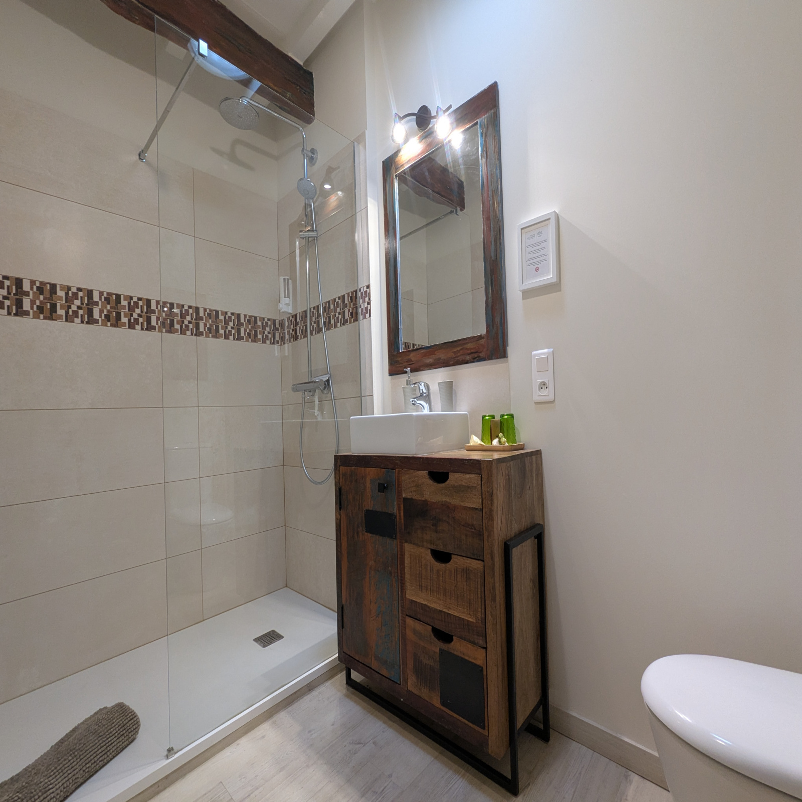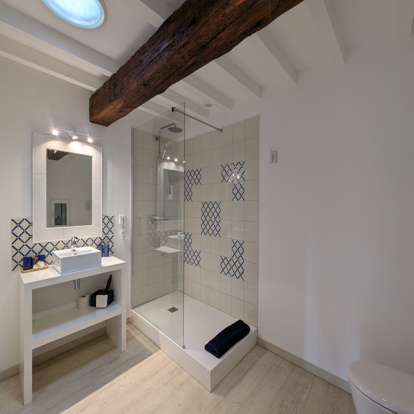 À l’étage, un vaste palier dessert cinq suites indépendantes, chacune dotée de sa propre salle d’eau et WC, offrant un cadre parfait pour une activité de chambres d’hôtes de charme ou pour recevoir famille et invités en toute intimité.