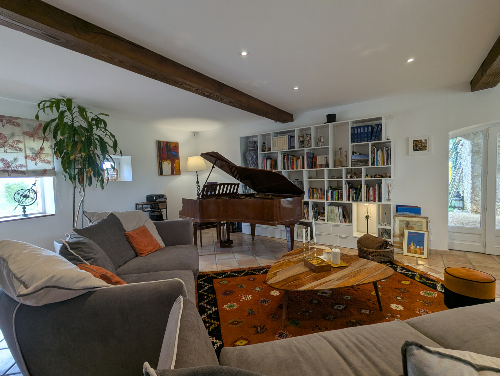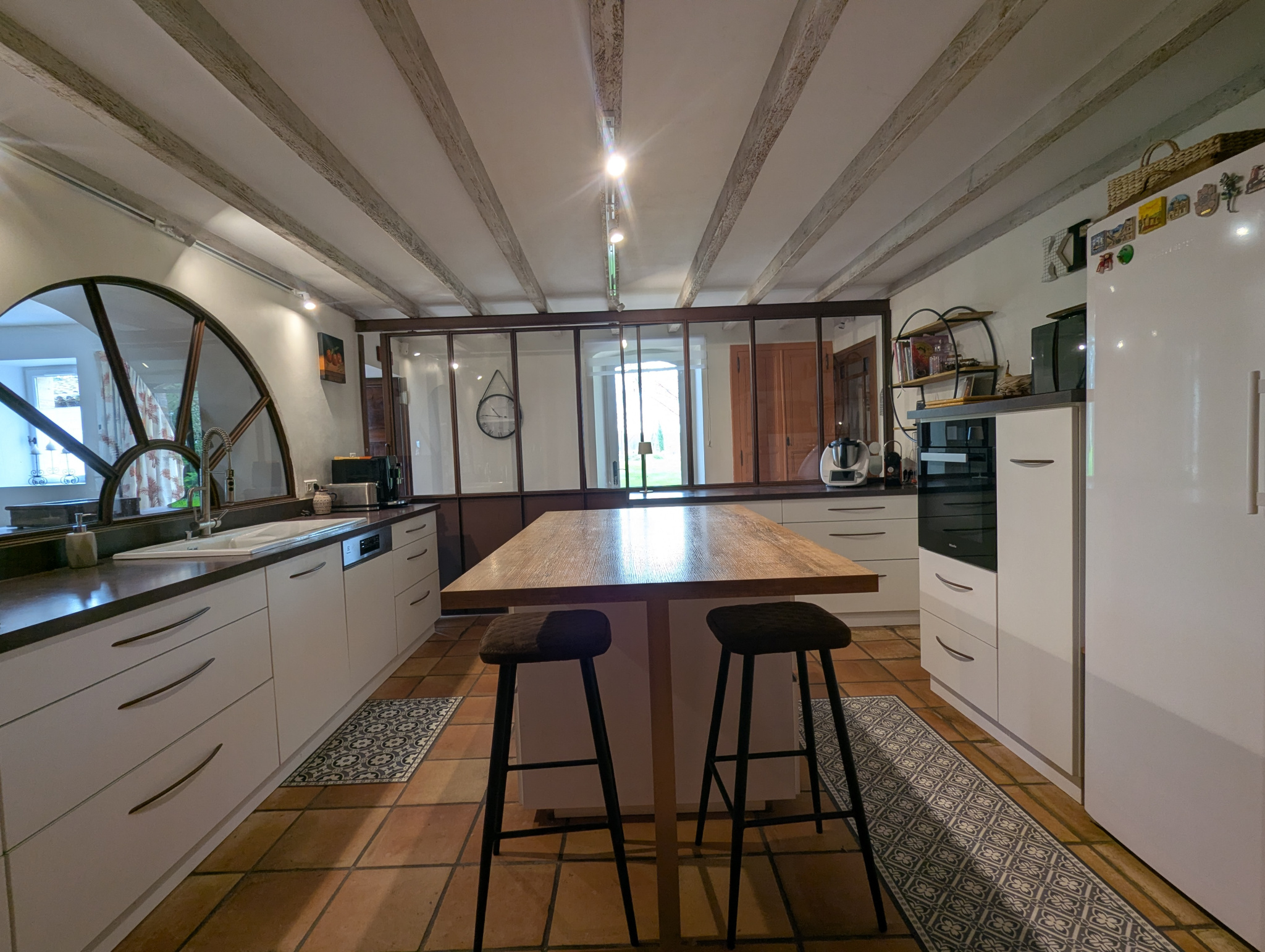 La propriété offre des volumes généreux et une distribution idéale. Le rez-de-chaussée dévoile une cuisine avec verrière ouverte sur un salon chaleureux, une salle à manger élégante ainsi qu’un cellier fonctionnel. Un second salon, plus intimiste, complète cet espace, ainsi qu’une superbe suite avec chambre, salle d’eau et dressing.