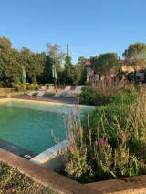 Dès l’entrée, une majestueuse allée de cyprès souligne le charme et l’élégance des lieux, menant à une authentique bâtisse en pierre datant des années 1900, entièrement pensée pour allier cachet d’antan et confort moderne.
