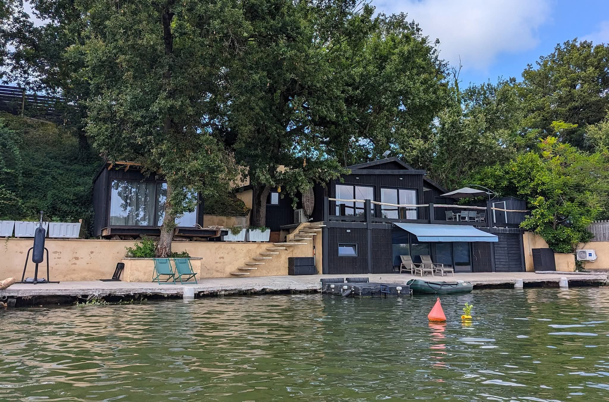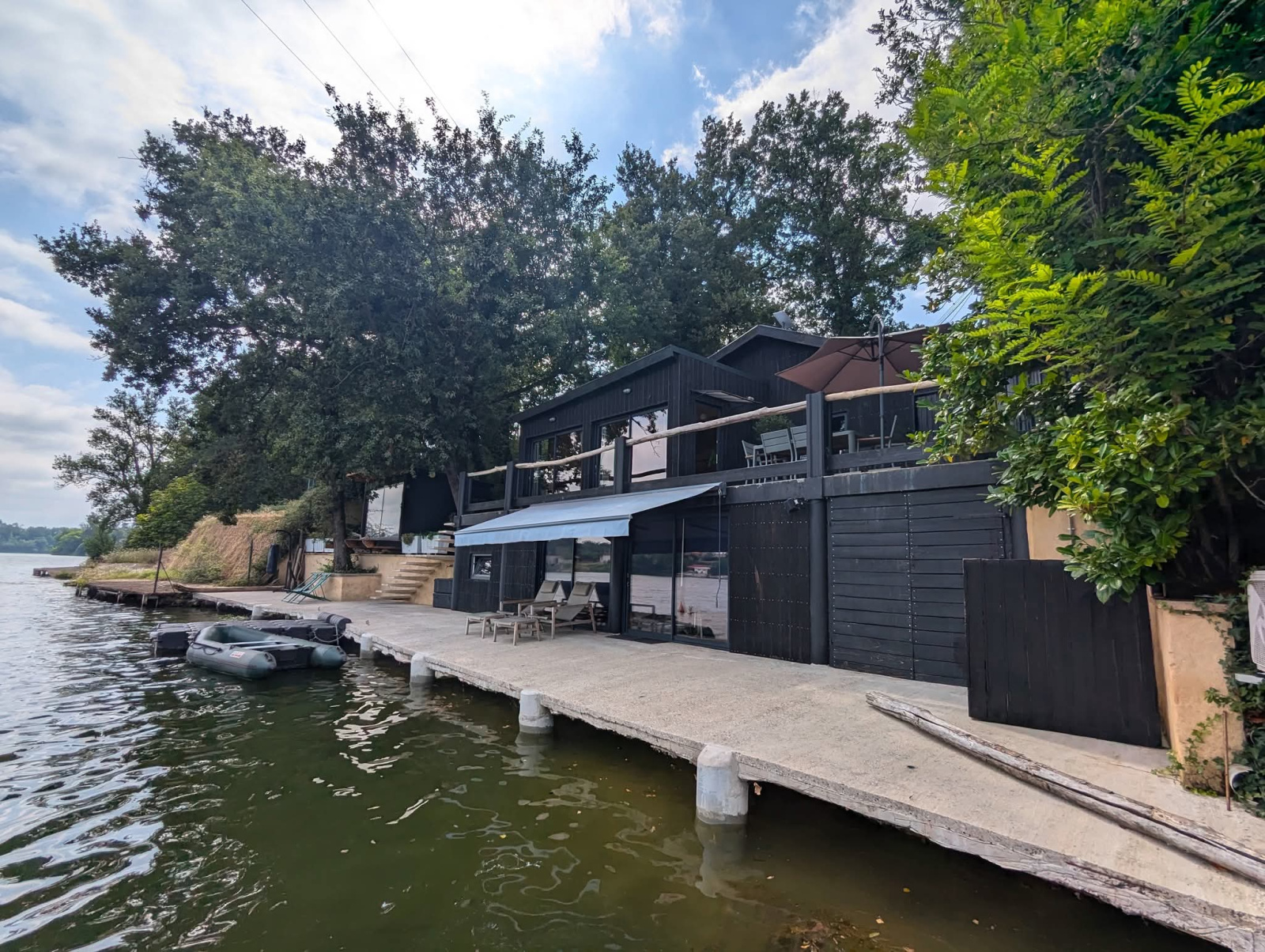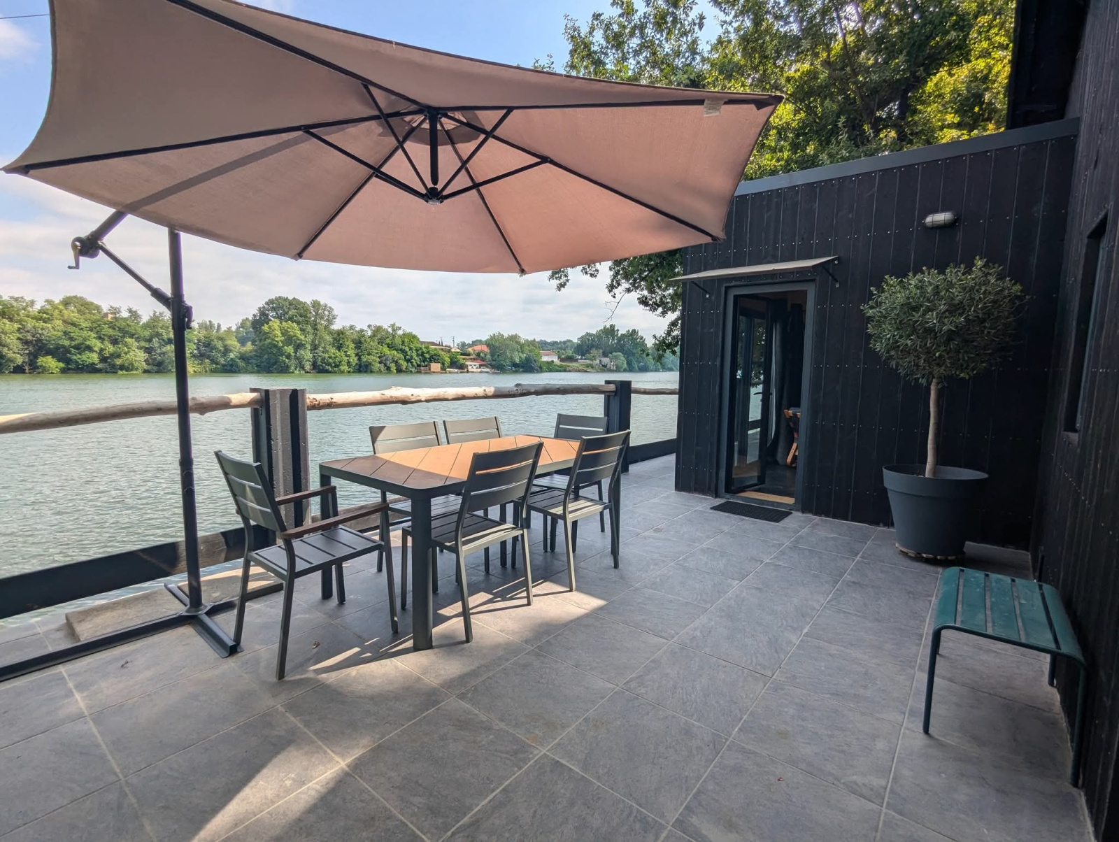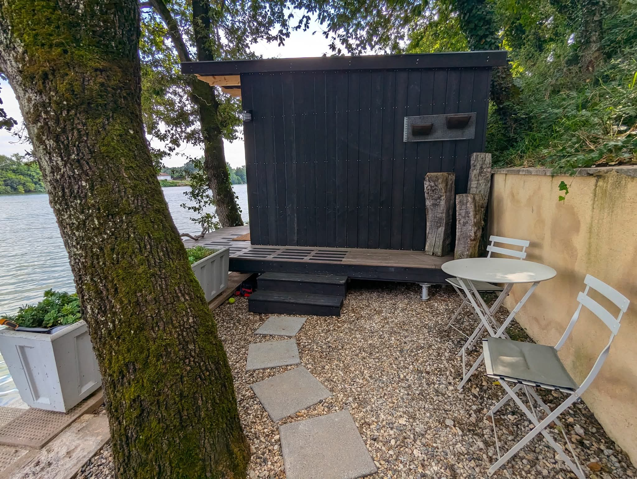 Et puis, il y a ces détails qui font toute la différence : un sauna finlandais pour se réchauffer en hiver, une douche extérieure pour les retours d’été, et surtout cet accès direct au Tarn, permettant d’amarrer un bateau, de partir au fil de l’eau ou simplement de profiter pleinement de la baignade.