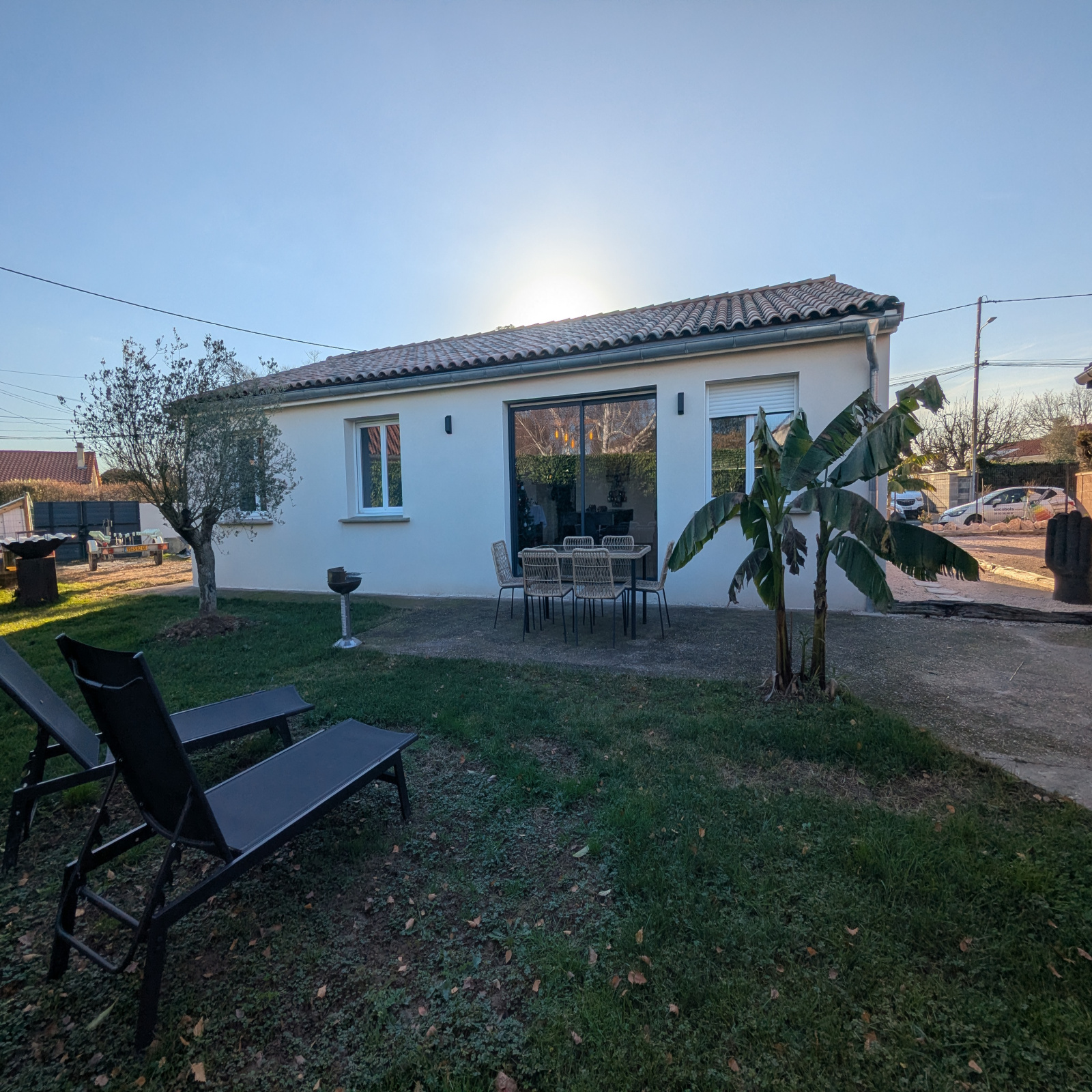 Implantée sur une parcelle de 655 m², elle dispose de deux portails et d’un jardin indépendant. À l’extérieur, tout est pensé pour les bons moments : terrain de pétanque, petit bar façon guinguette et abri de jardin.