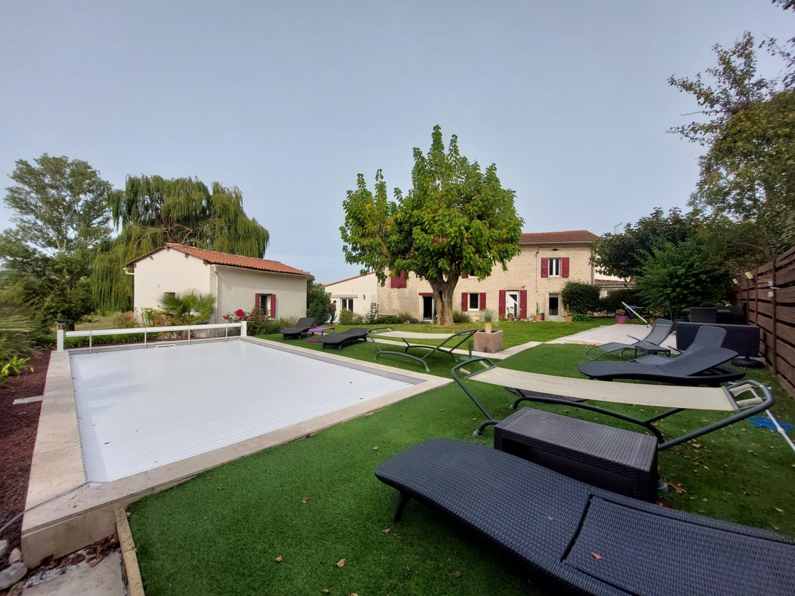 A vendre, CADALEN, grande maison de charme avec dépendances piscine et terrain. Cette construction en pierre des années 1900 saura vous séduire par son astucieux alliage de traditionnel et de modernité. L'habitation principale est composée au rez de chaussée d'une entrée, d'un salon cosy de 21m² s'ouvrant sur une salle à manger de 28m², d'une cuisine dînatoire de 24m², d'une véranda, d'une salle de bains de 7,5m² avec douche et baignoire, d'un cellier buanderie, d'un WC indépendant. A noter qu'une pièce de 37m² attenante au salon vous permet si vous le souhaitez de disposer grâce à des aménagements d'une pièce de vie de plus de 55m². L'étage lui, se compose de trois chambres (22m², 13m², 13m²), d'une suite parentale de 19m² avec douche placard et WC. Pour recevoir votre famille, vos amis ou créer une activité professionnelle, trois suites parentales indépendantes de 20m² avec salle d'eau et WC sont à votre disposition. Une des suites peut être rattachée à l'habitation principale. L'extérieur admirablement aménagé vous ravira et, vous permettra de vous adonner à de précieux moments de détente. L'espace piscine sécurisé ne fera que renforcer l'impression de bien-être. Equipements : poêle à granules, arrosage automatique, puits, garage atelier de 35 m², parkings, assainissement autonome.