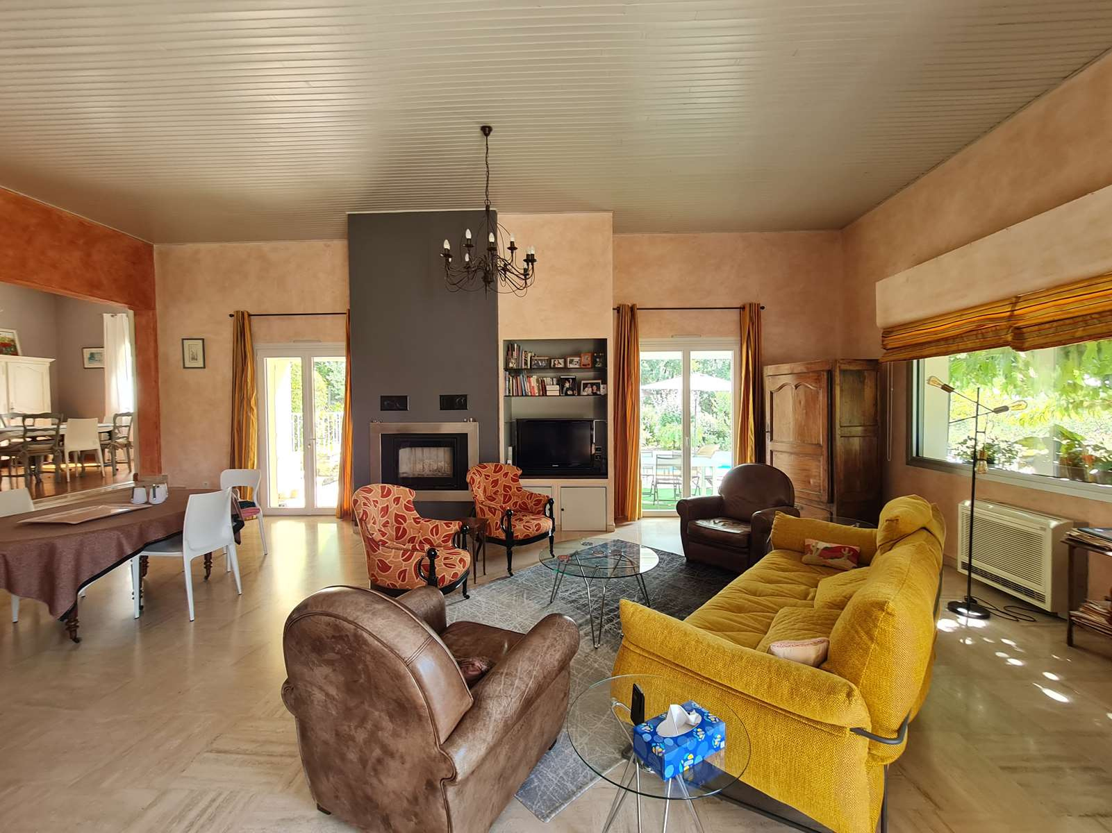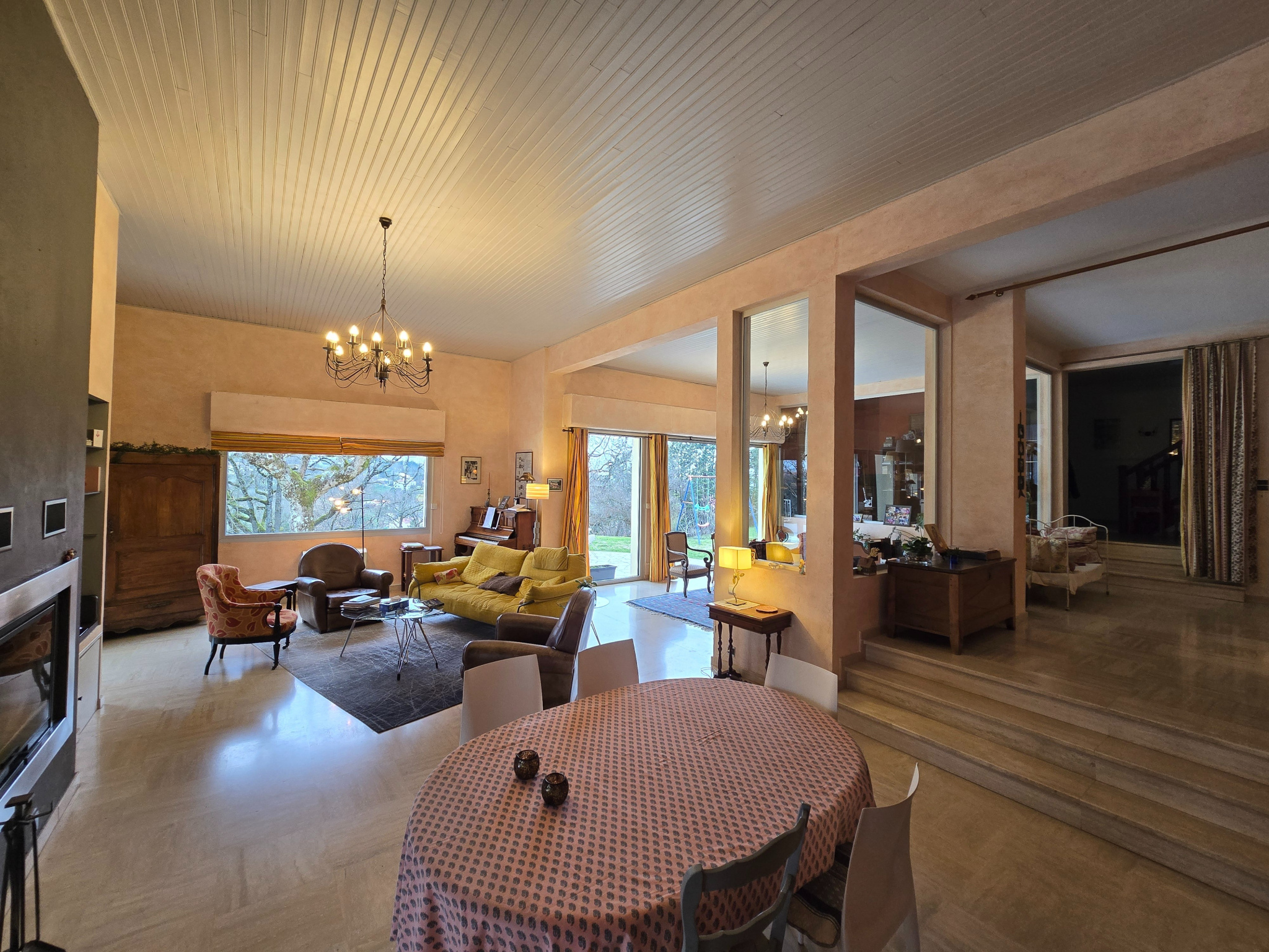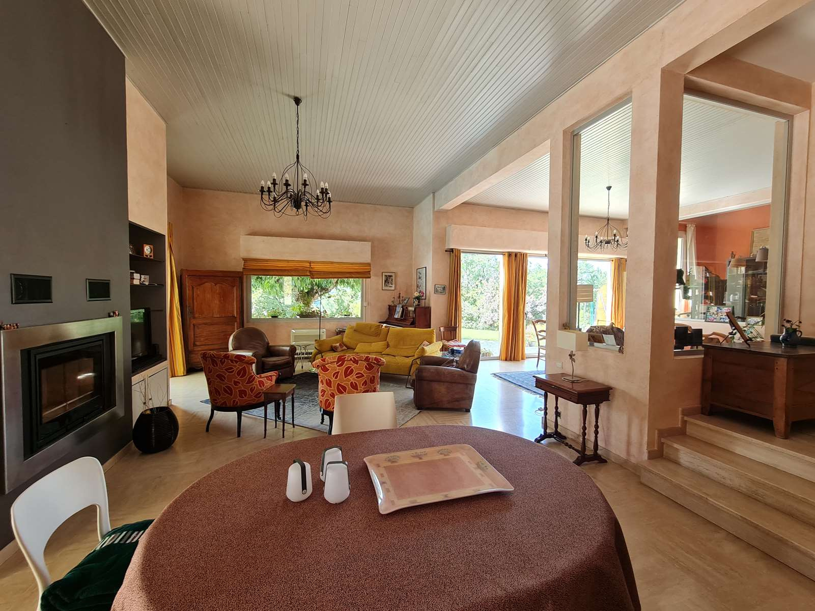 L’espace de vie constitue le véritable cœur de la propriété. Vous serez immédiatement séduit par son magnifique séjour de 73 m², baigné de lumière grâce à sa belle hauteur sous plafond et ses ouvertures donnant sur le jardin et la piscine. Une cheminée avec insert vient parfaire l’ambiance chaleureuse et conviviale de cet espace exceptionnel. La cuisine, indépendante et entièrement équipée, s’ouvre sur une lumineuse salle à manger, idéale pour recevoir famille et amis.